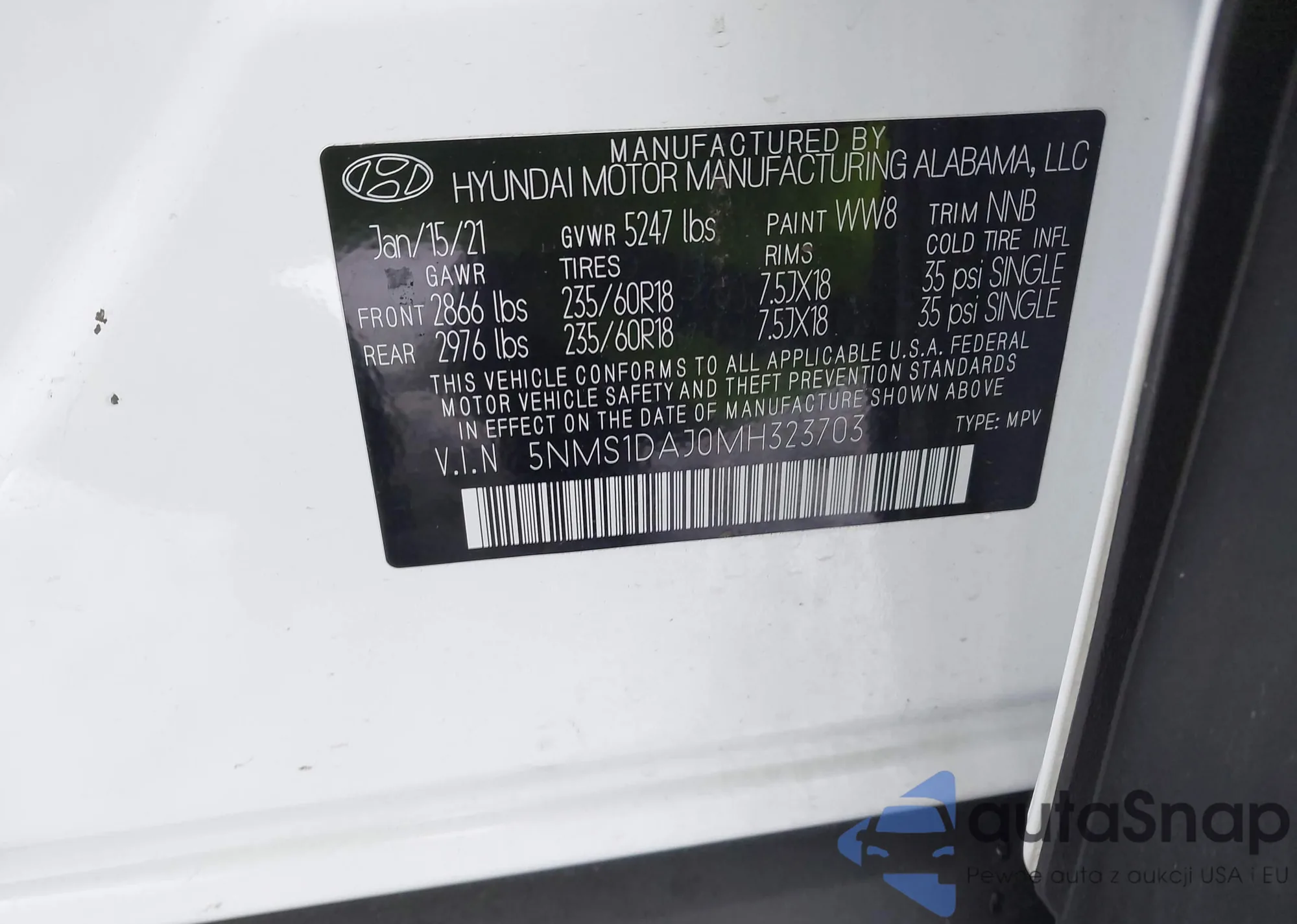 • VIN 5NMS1DAJ0MH323703