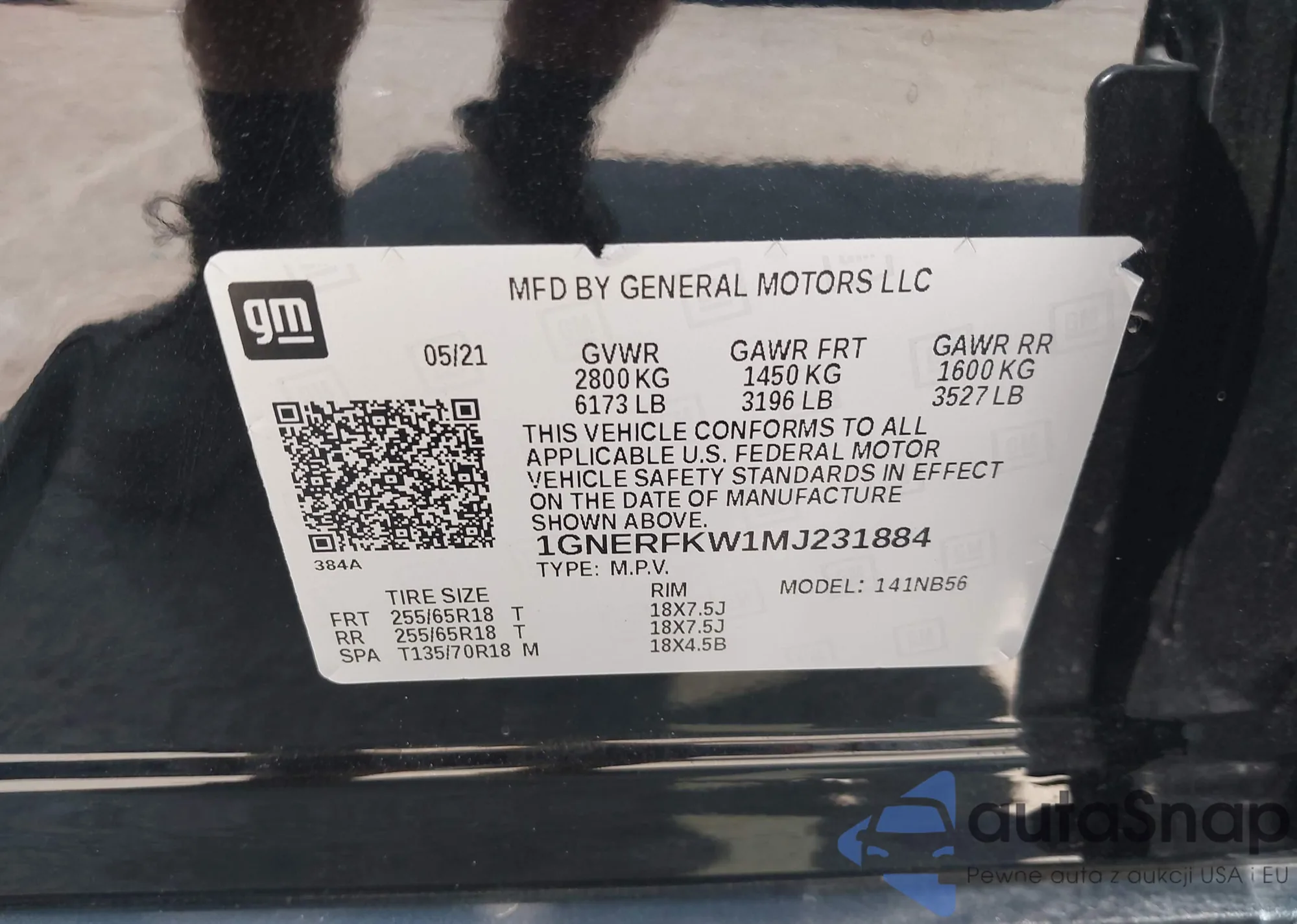 • VIN 1GNERFKW1MJ231884