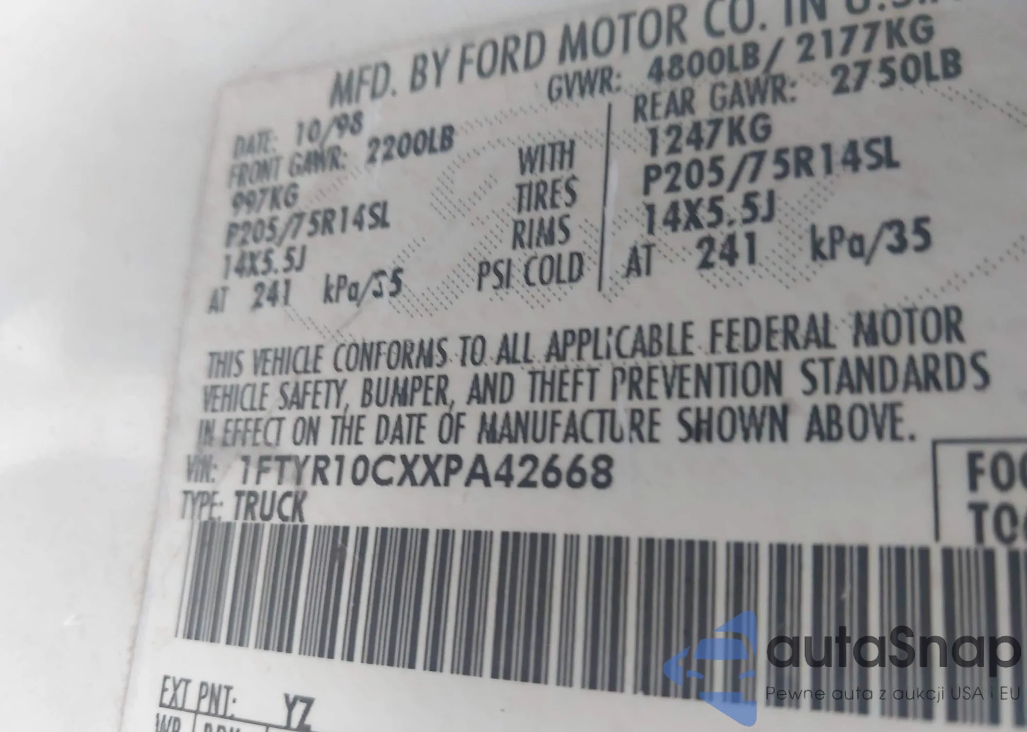 • VIN 1FTYR10CXXPA42668