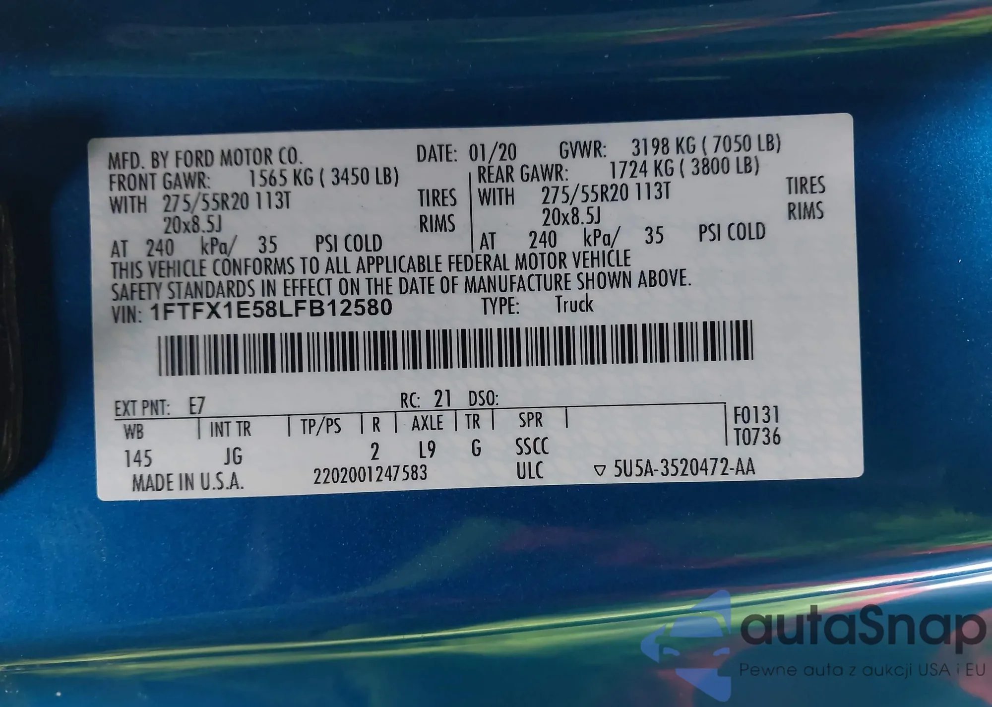• VIN 1FTFX1E58LFB12580