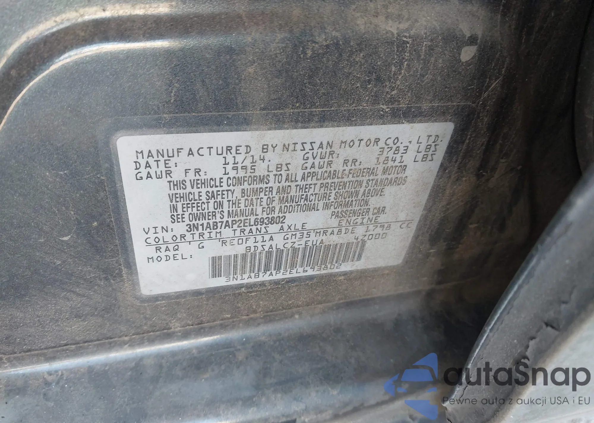 • VIN 3N1AB7AP2EL693802