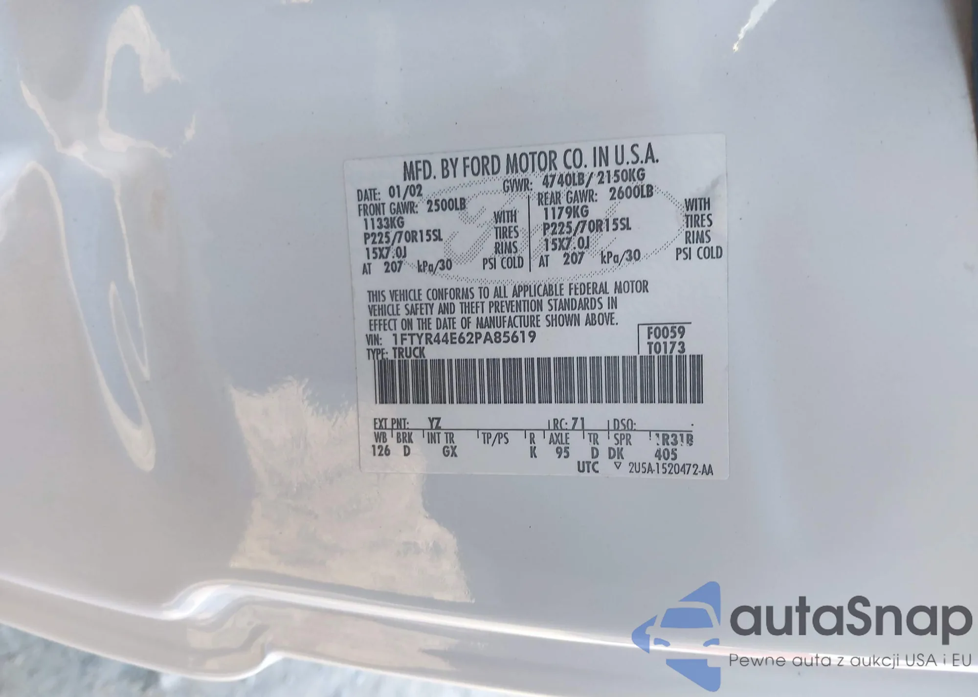LOT: 44269712 VIN: 1FTYR44E62PA85619