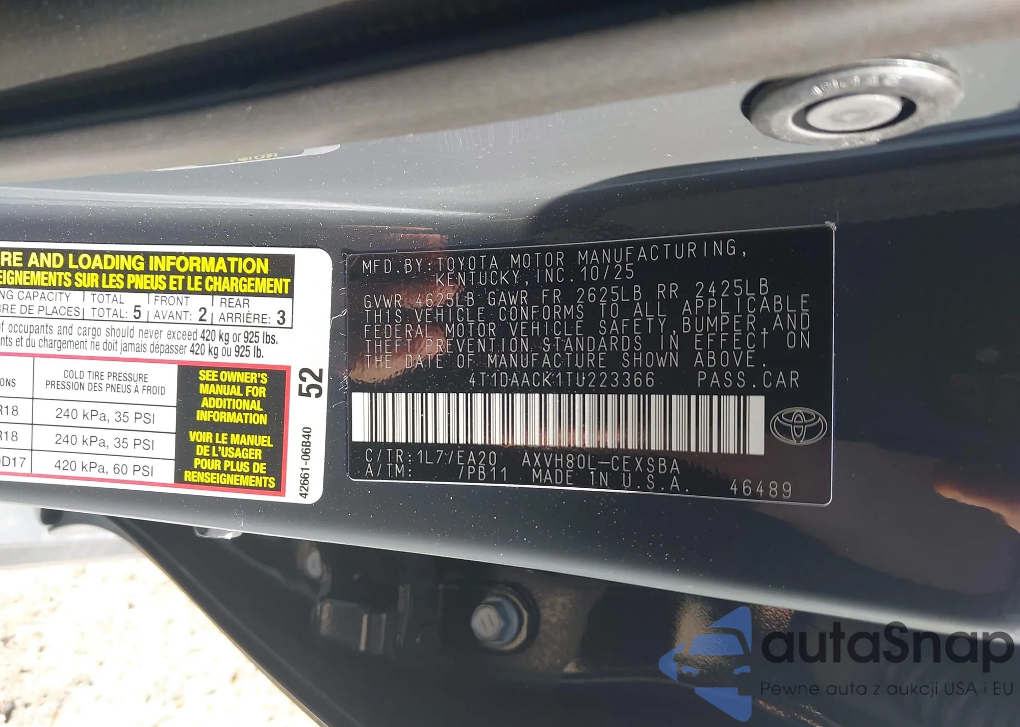 LOT: 43986169 VIN: 4T1DAACK1TU223366