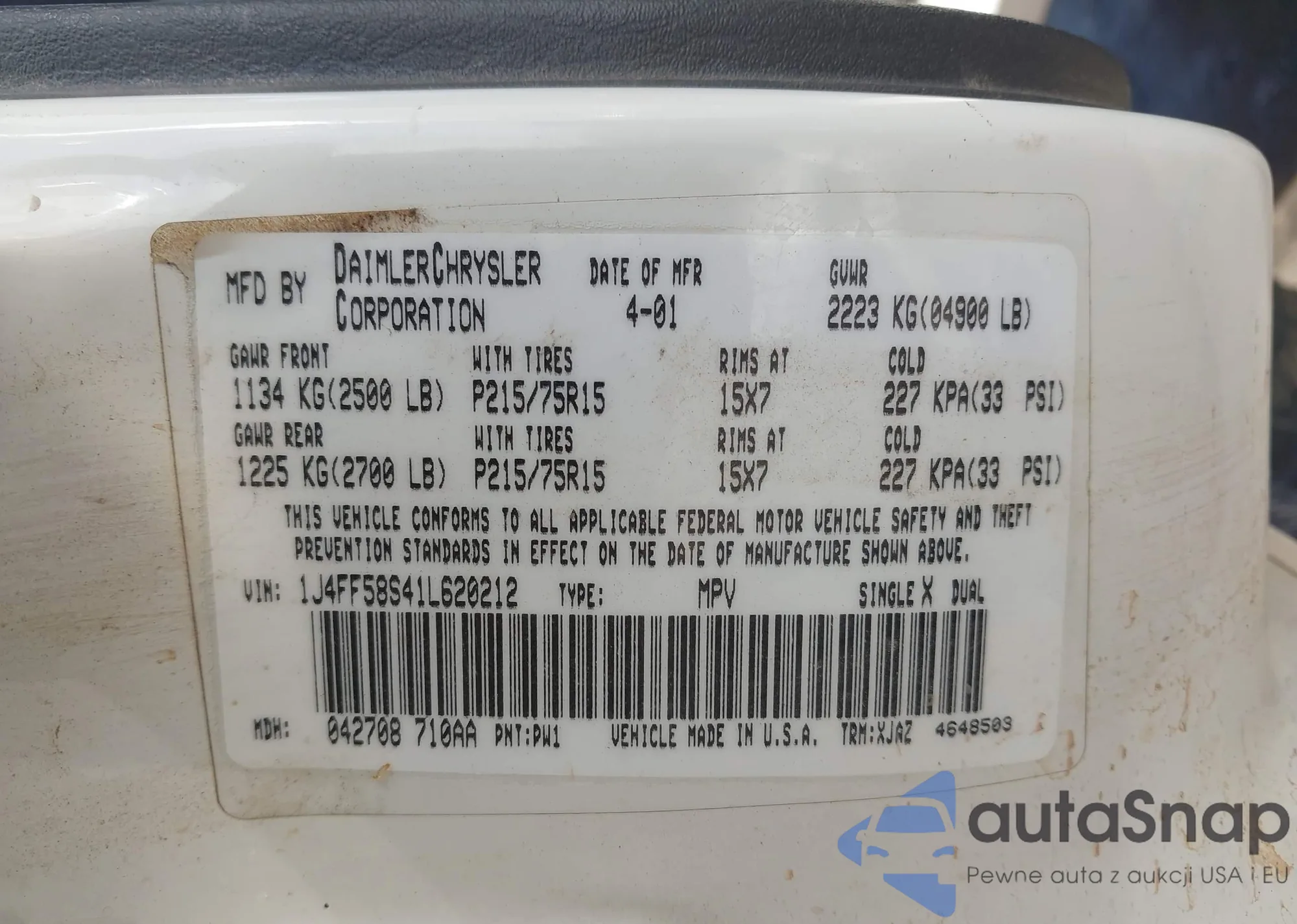 • VIN 1J4FF58S41L620212