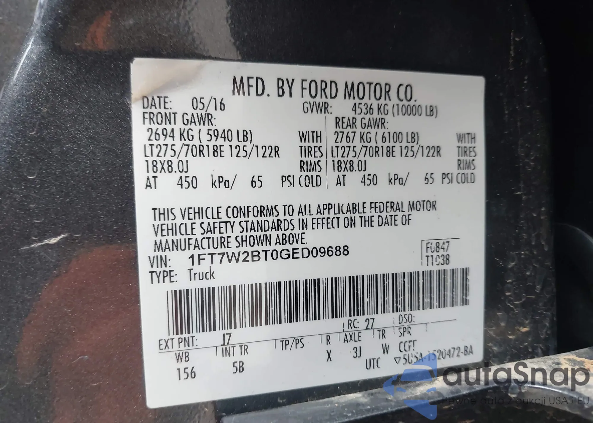 LOT: 44156842 VIN: 1FT7W2BT0GED09688