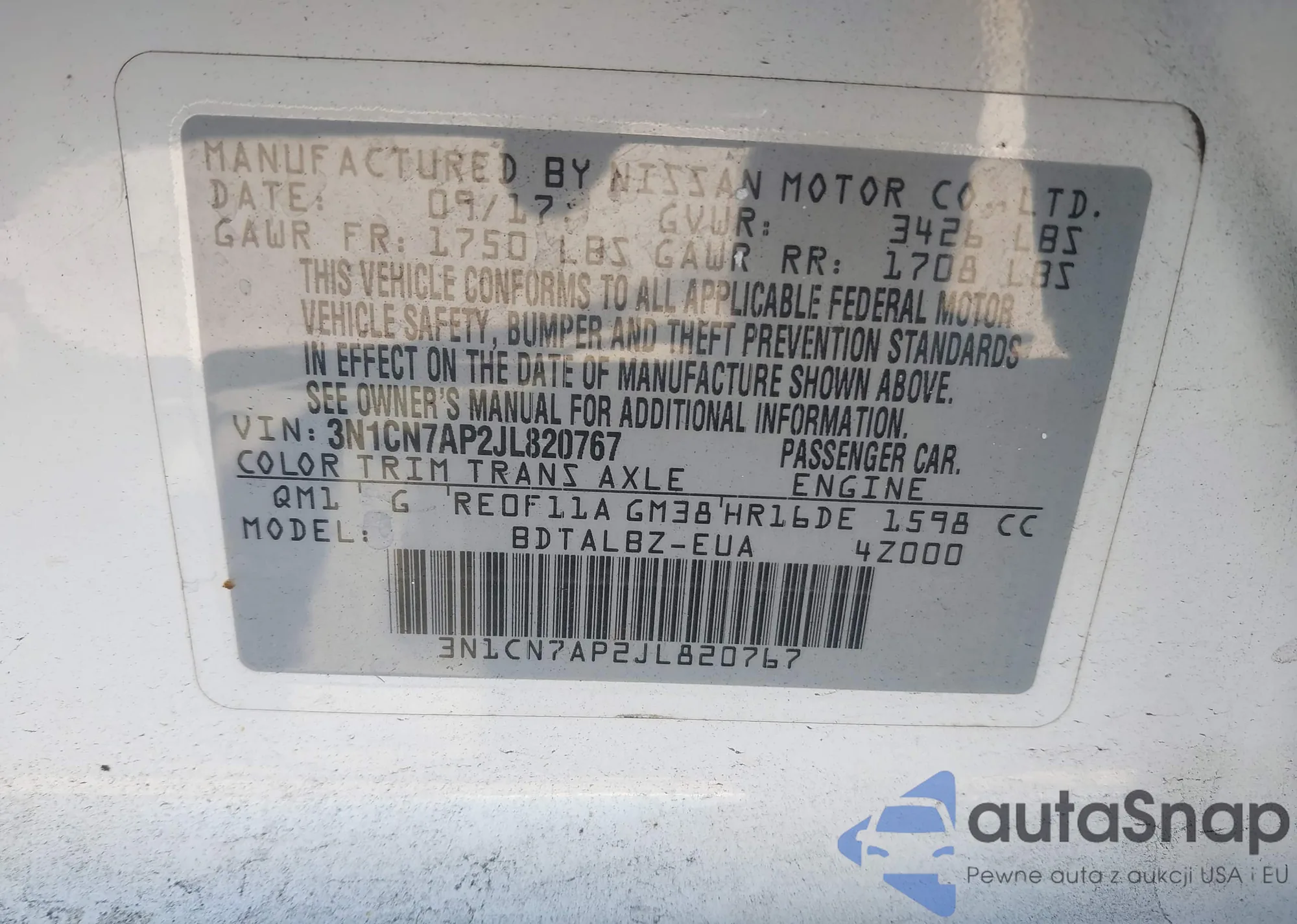 • VIN 3N1CN7AP2JL820767