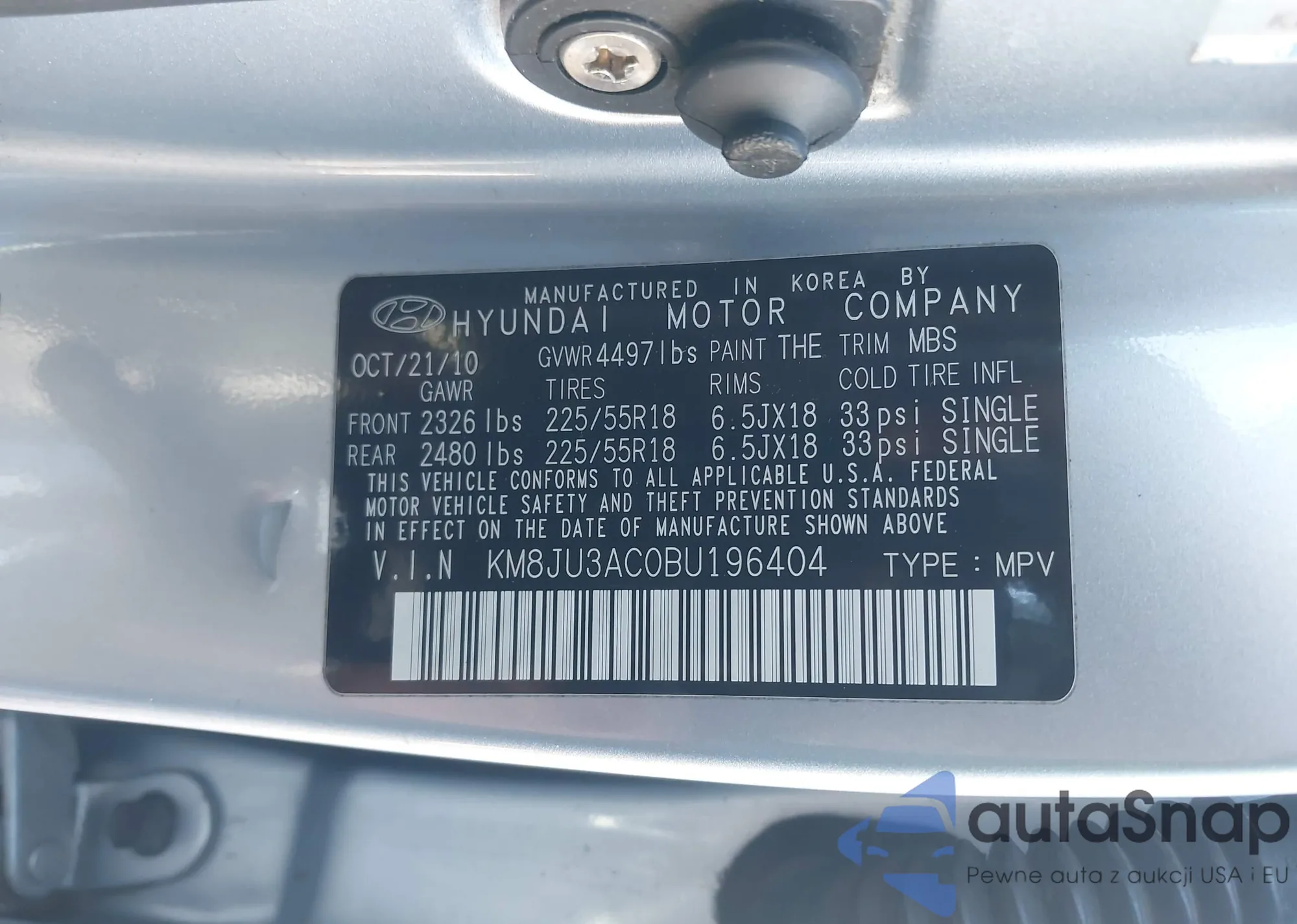 LOT: 44122785 VIN: KM8JU3AC0BU196404