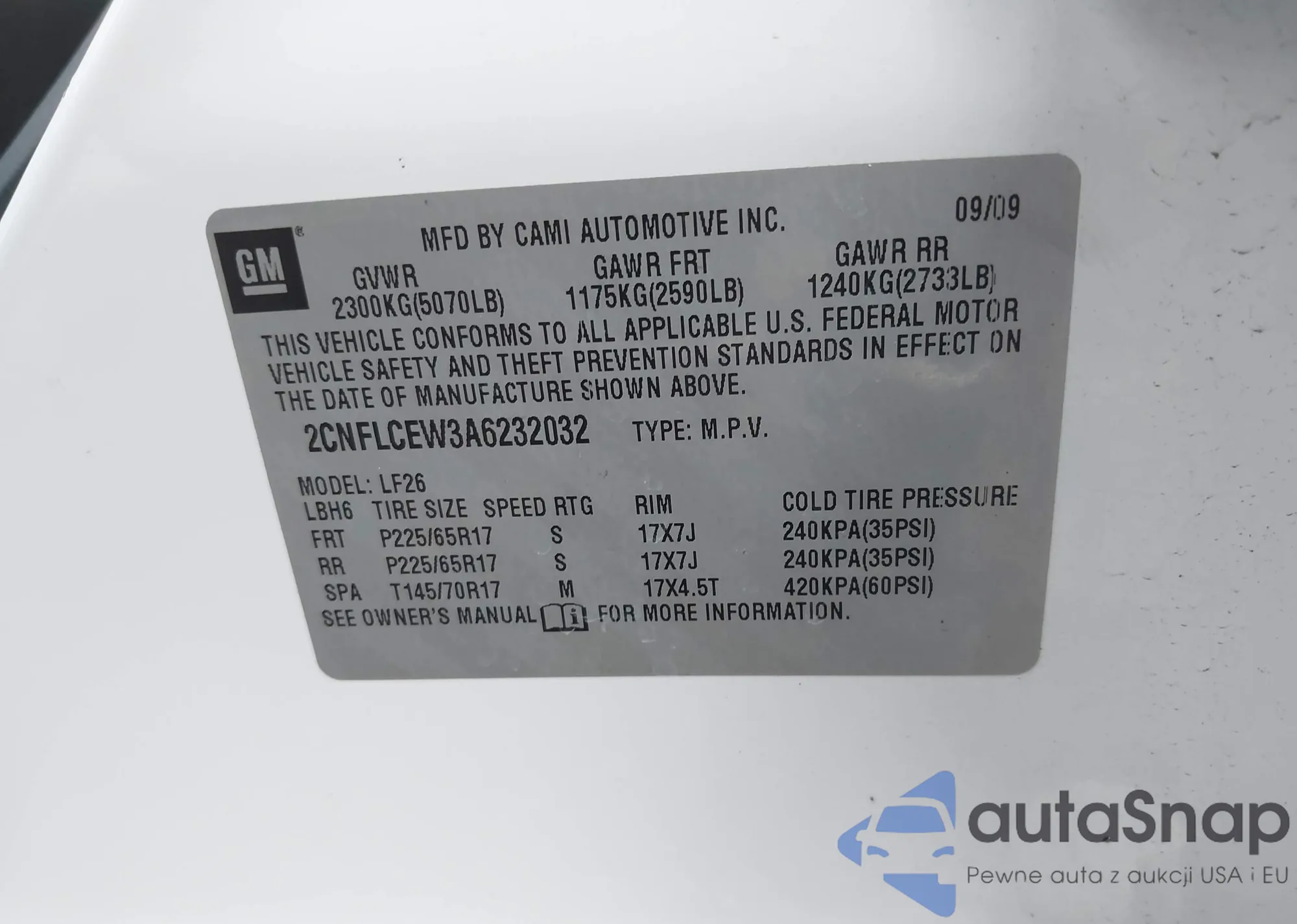 • VIN 2CNFLCEW3A6232032