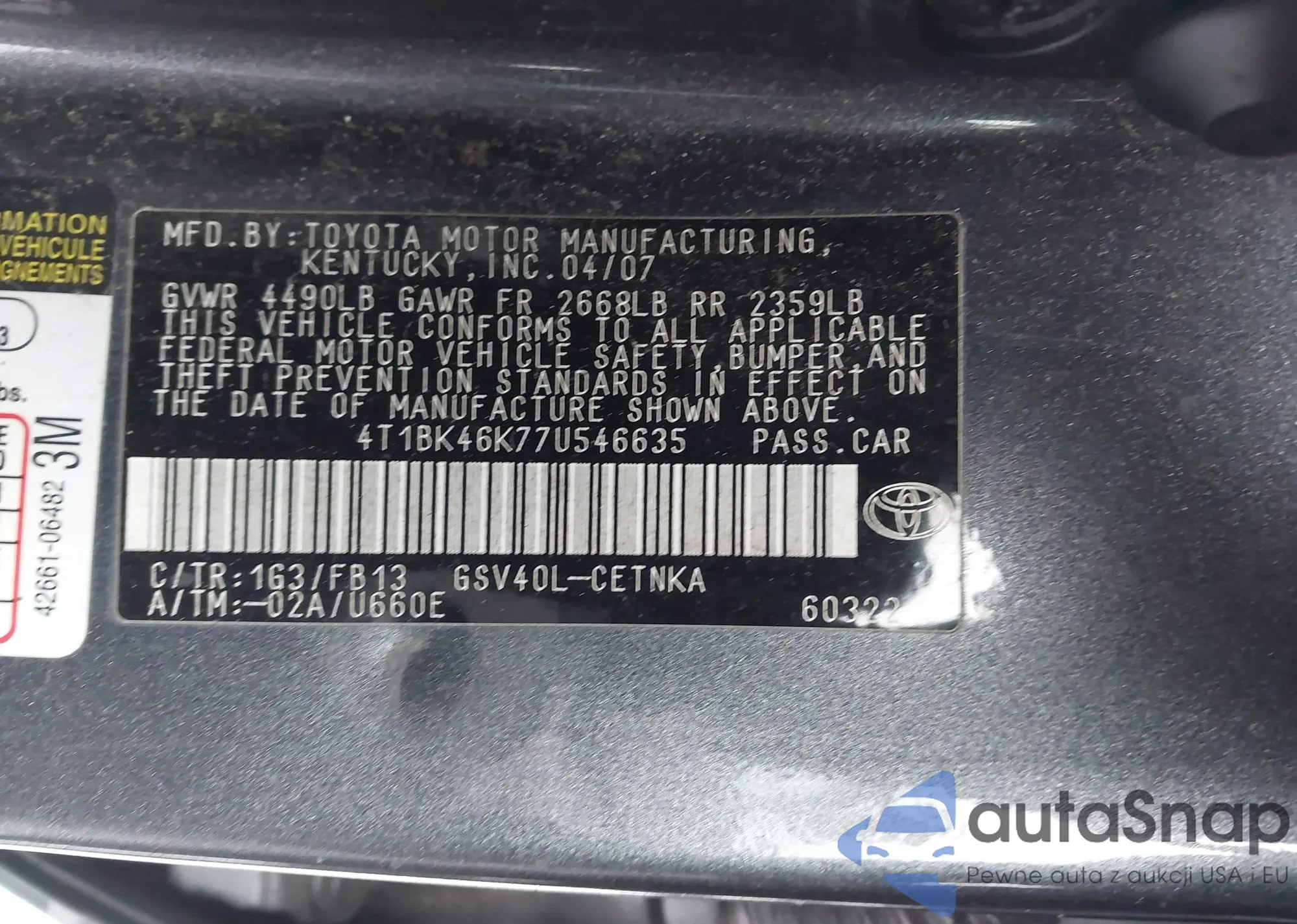 • VIN 4T1BE32K06U733091