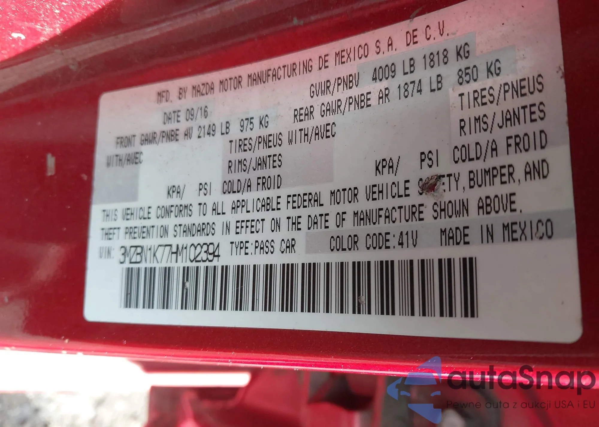 LOT: 43769244 VIN: WAUB1GFF3G1048927
