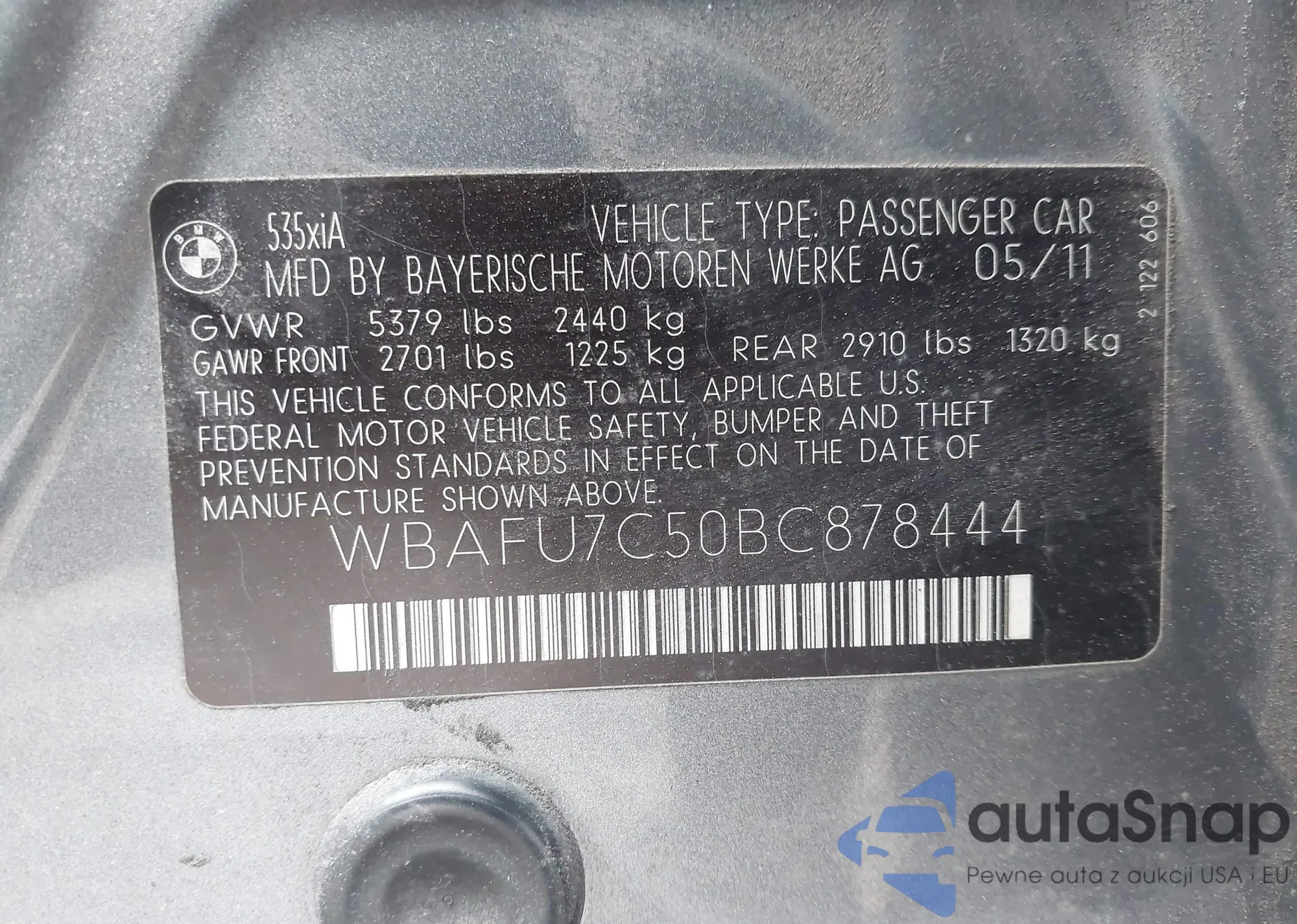 • VIN WBAFU7C50BC878444
