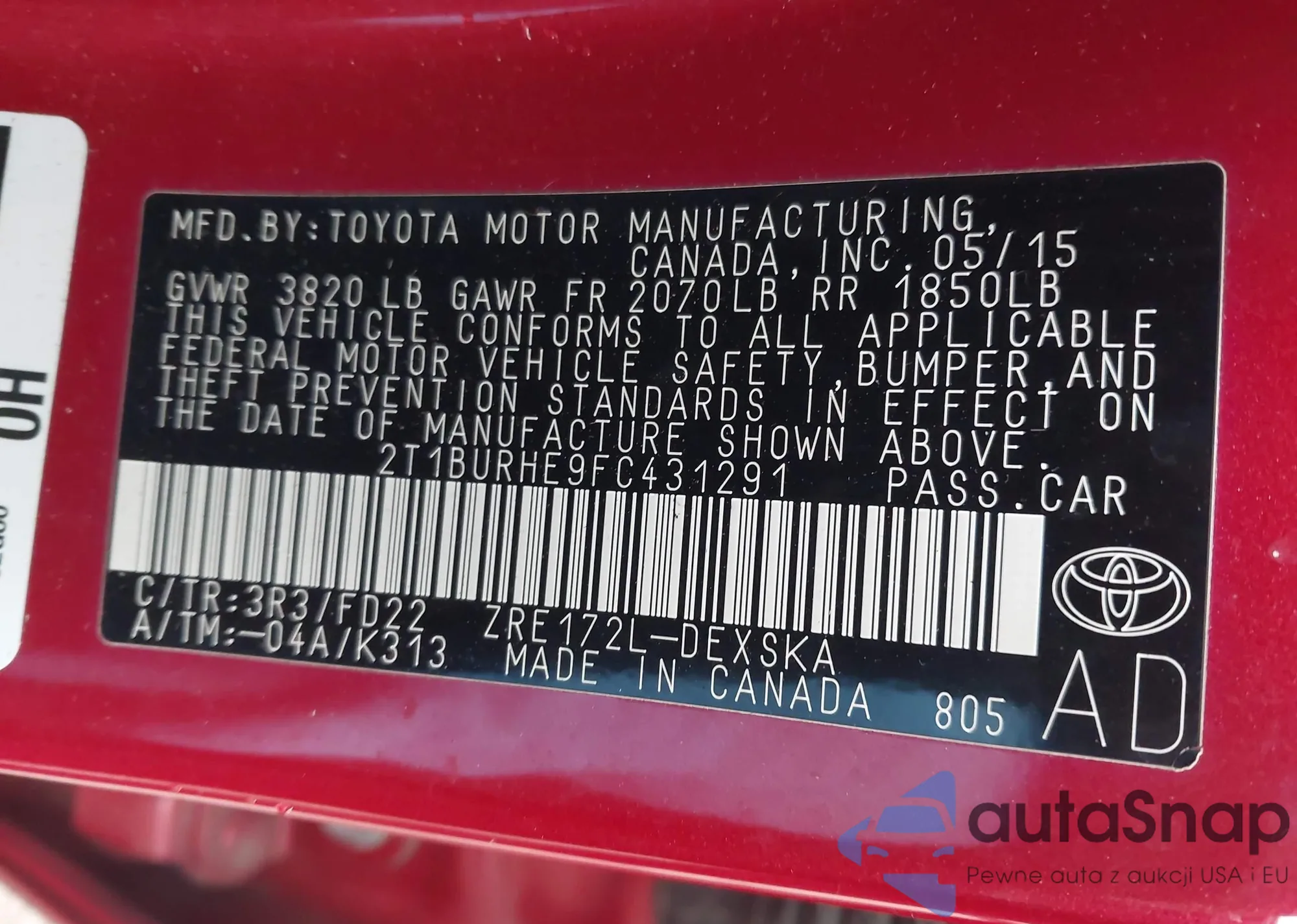 • VIN 2T1BURHE9FC431291