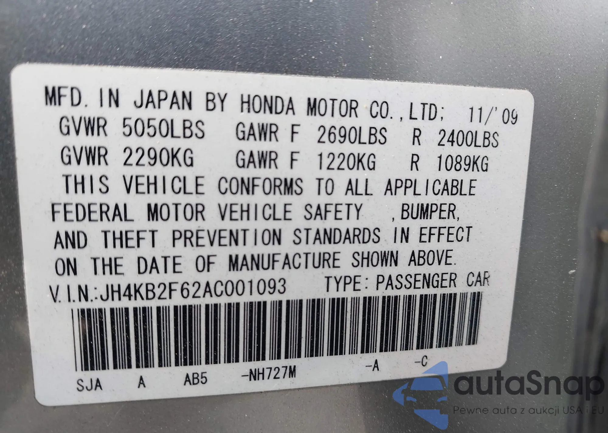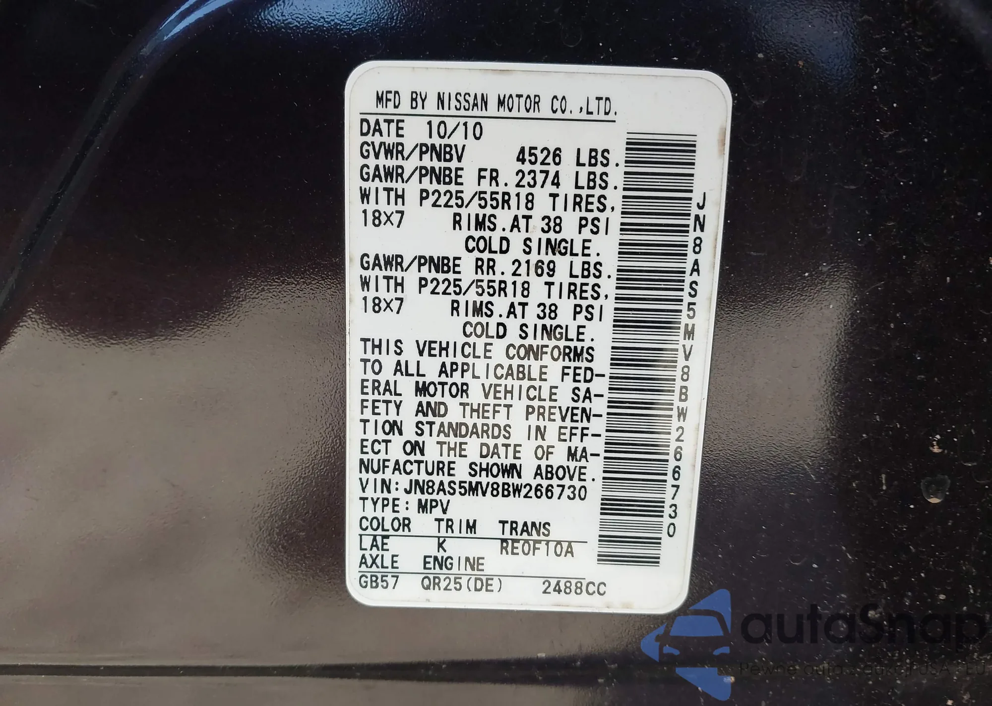 • VIN JN8AS5MV8BW266730