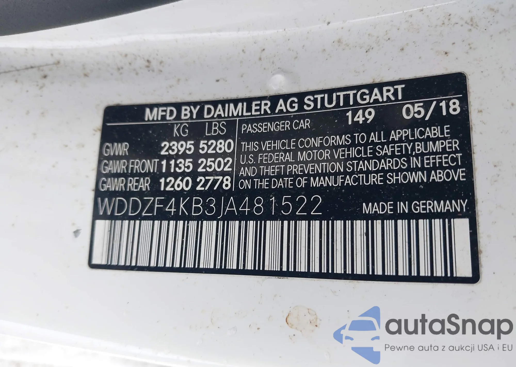 • VIN WDDZF4KB3JA481522