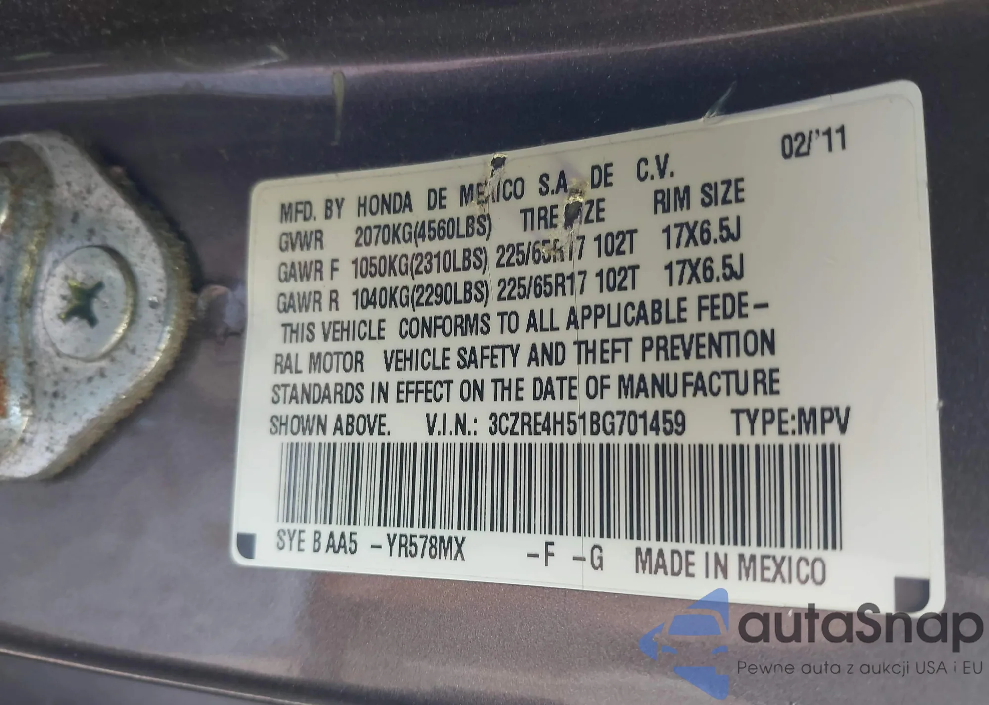 • VIN 3CZRE4H51BG701459
