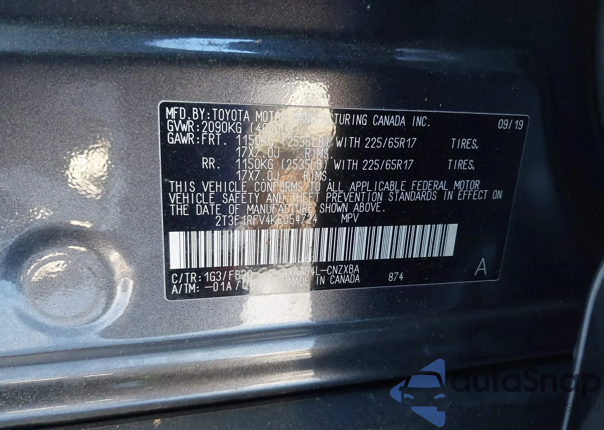 • VIN 2T3F1RFV4KC054724