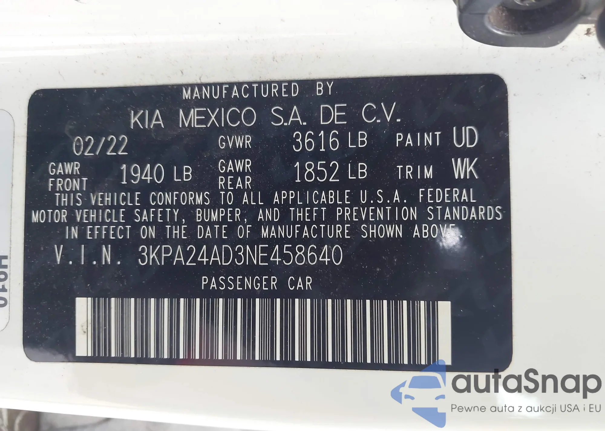 • VIN 3KPA24AD3NE458640