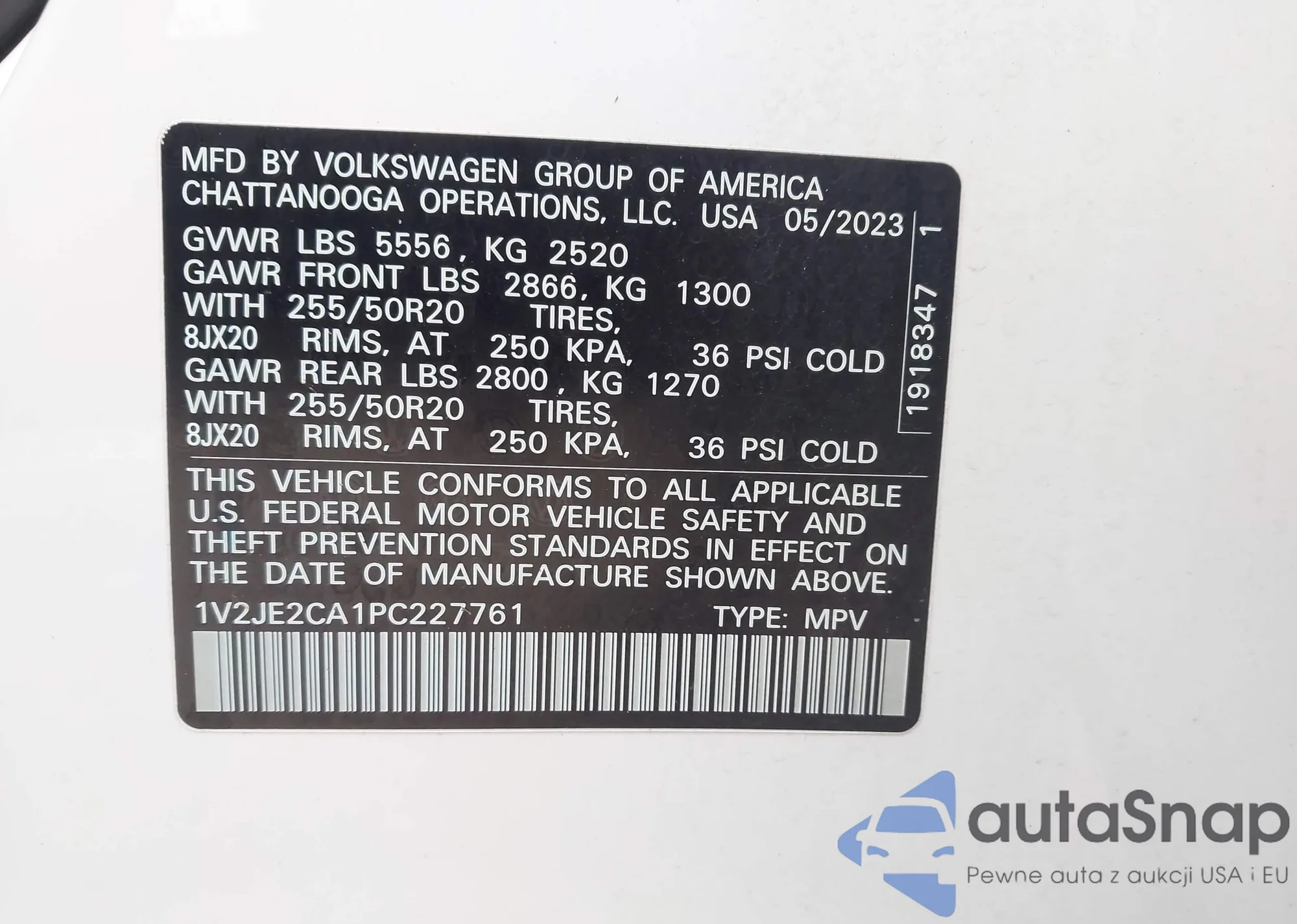 • VIN 1V2JE2CA1PC227761