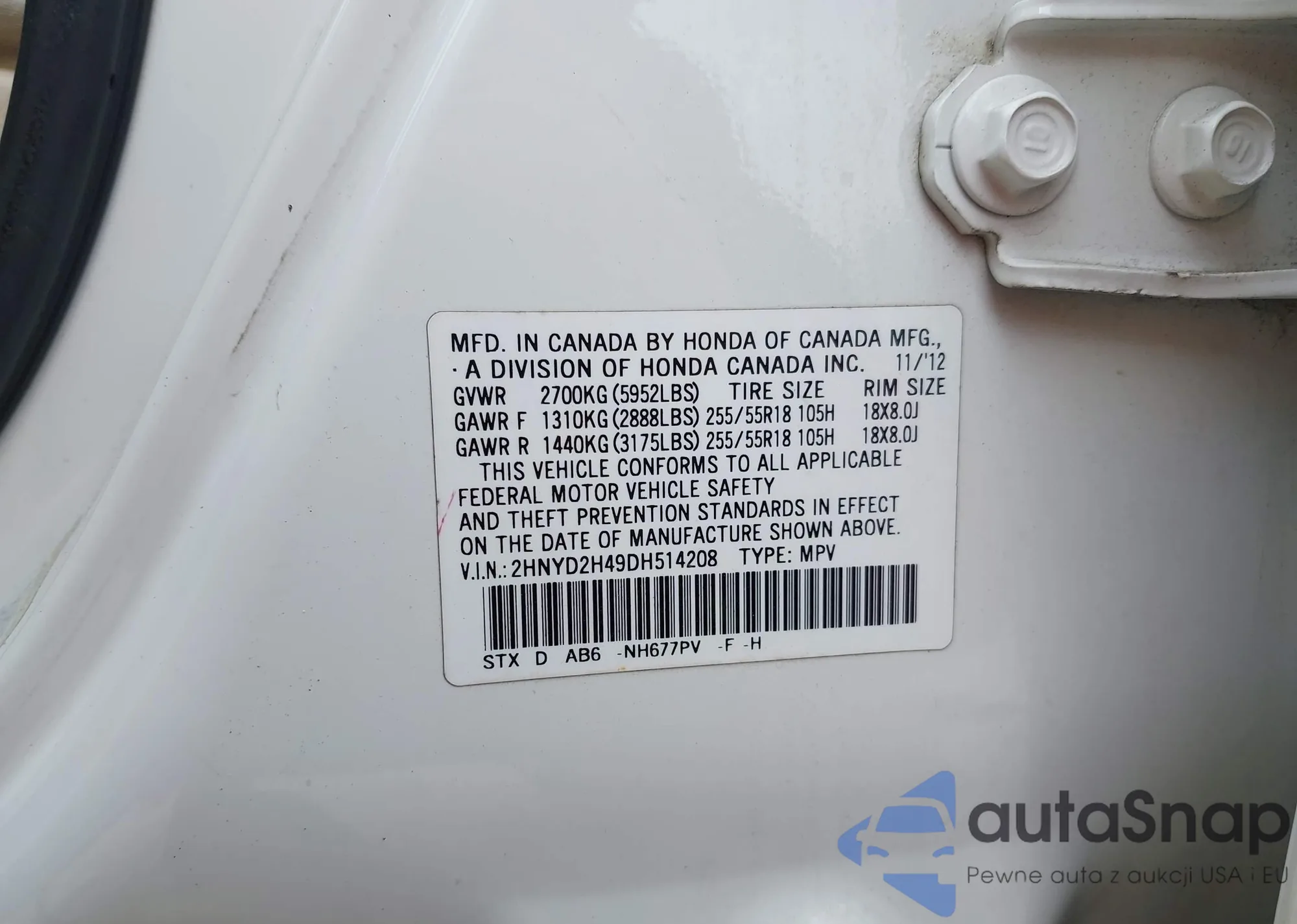 • VIN 2HNYD2H49DH514208