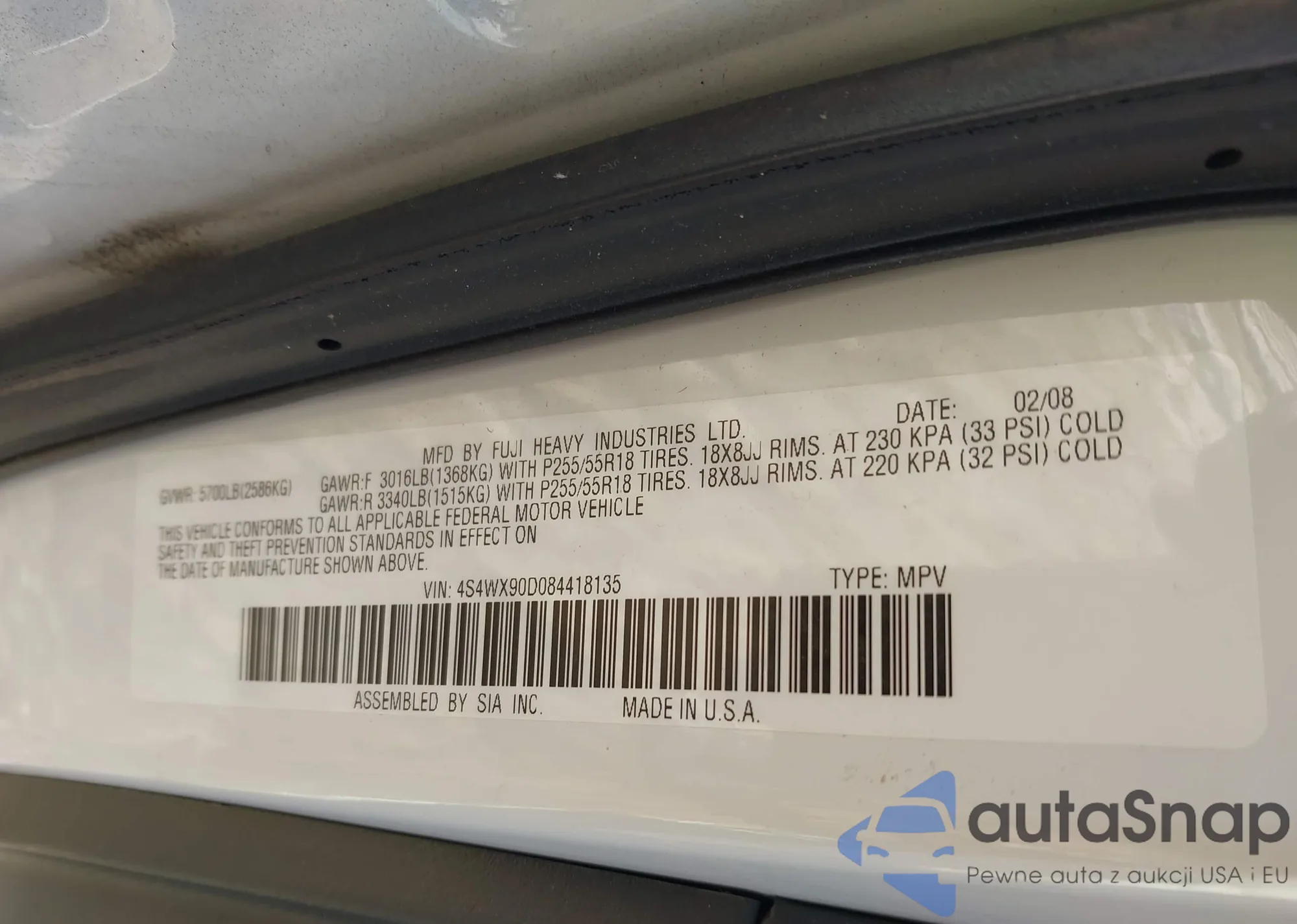 2008 Subaru Tribeca Limited 7-Passenger from USA, damaged, VIN 4S4WX90D084418135