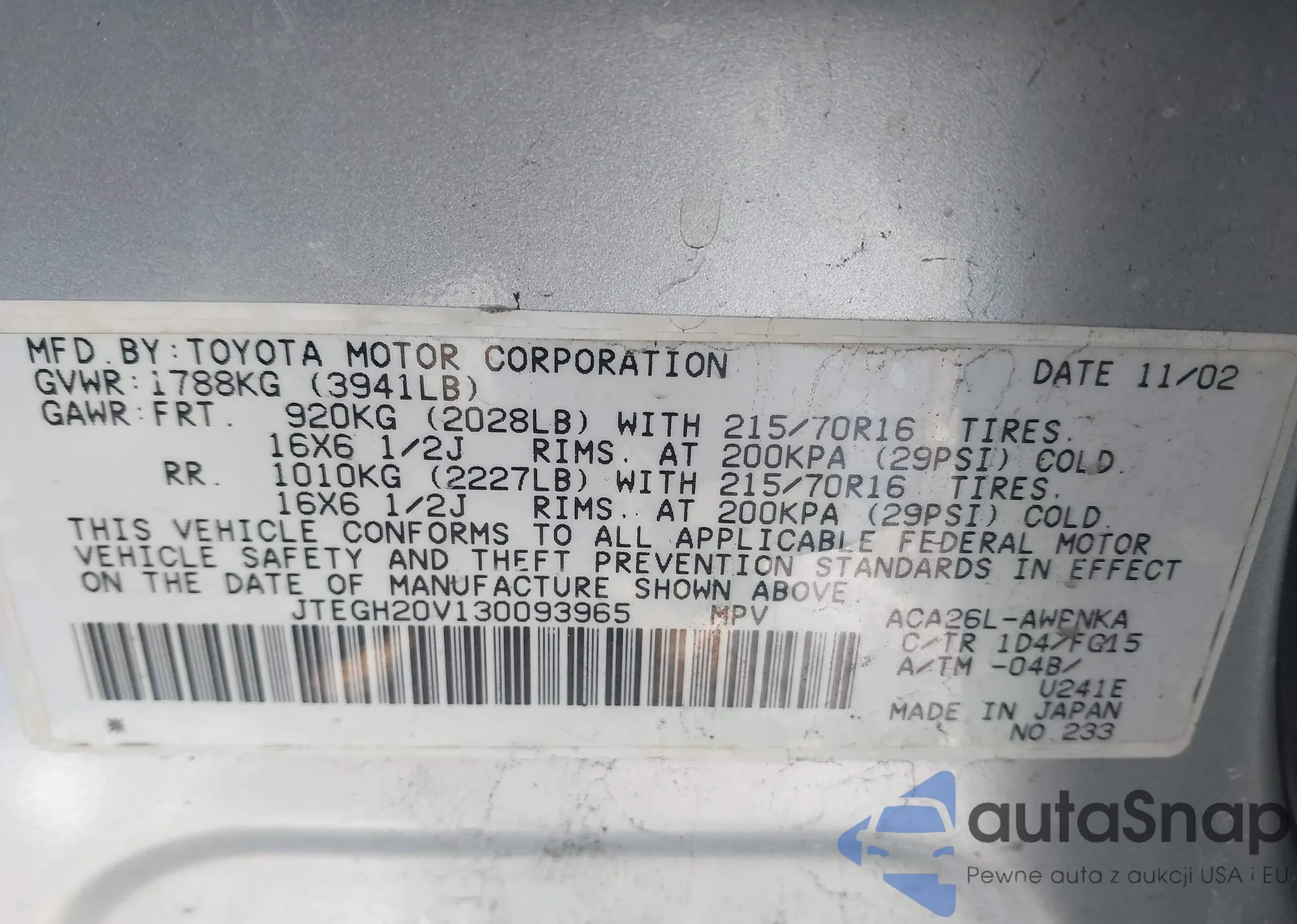 LOT: 43896633 VIN: JM3TCBCY2M0509215
