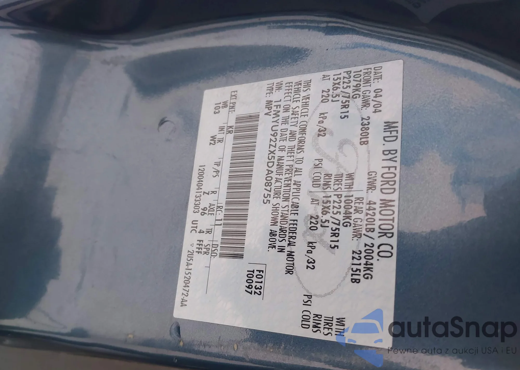• VIN 1FMYU92ZX5DA08755