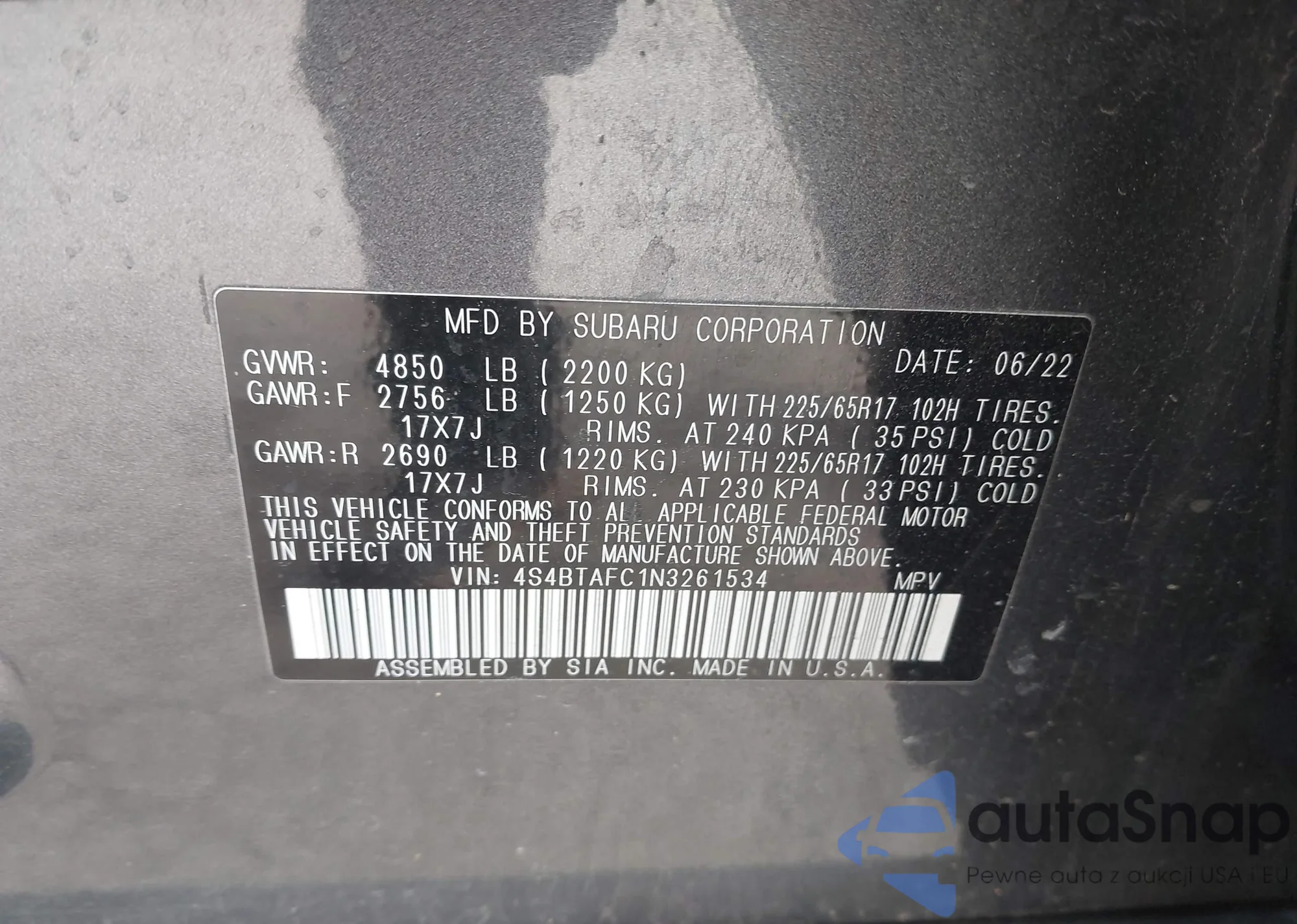 • VIN 4S4BTAFC1N3261534