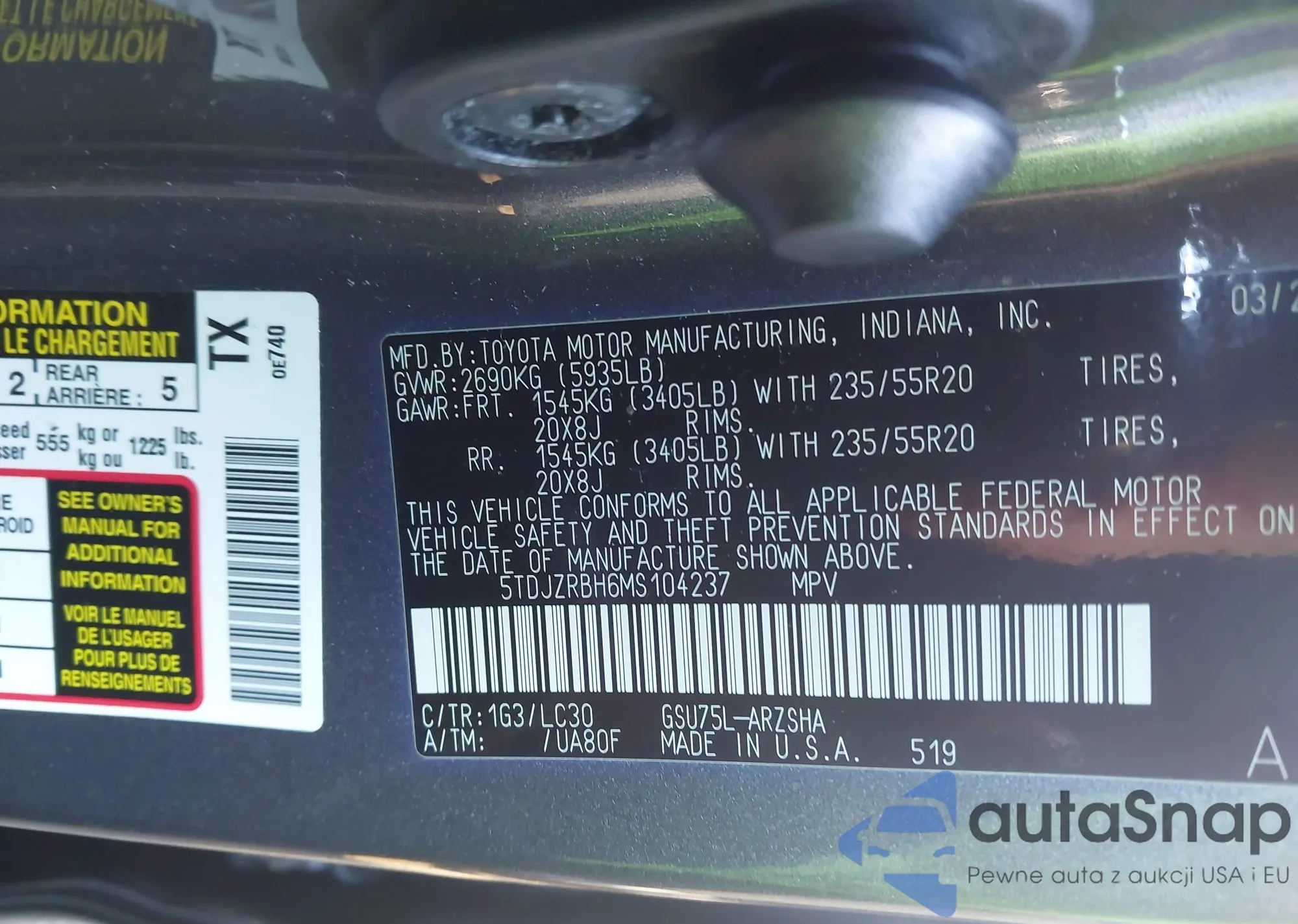 • VIN 5TDJZRBH6MS104237
