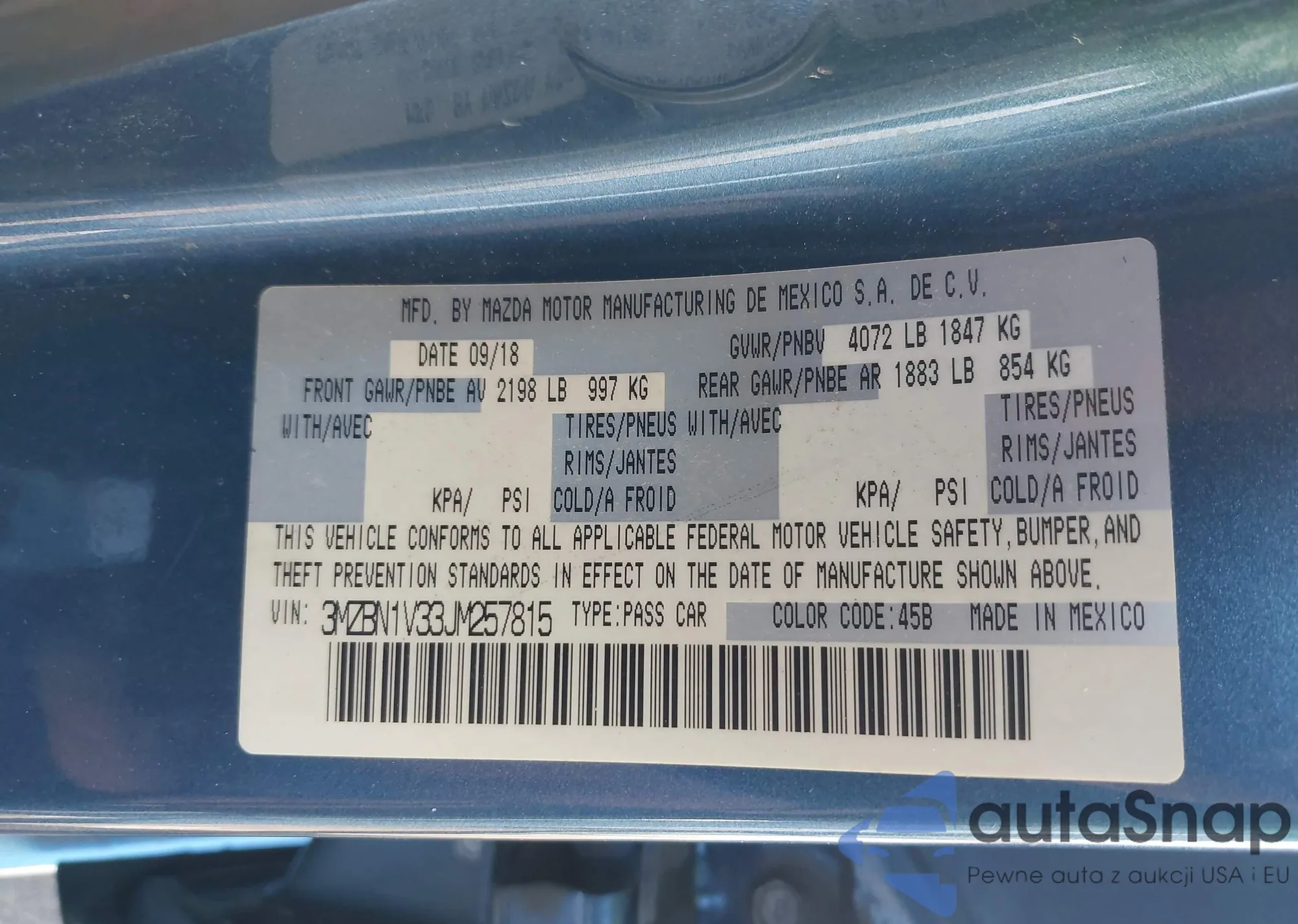 LOT: 43781498 VIN: 3MZBN1V33JM257815