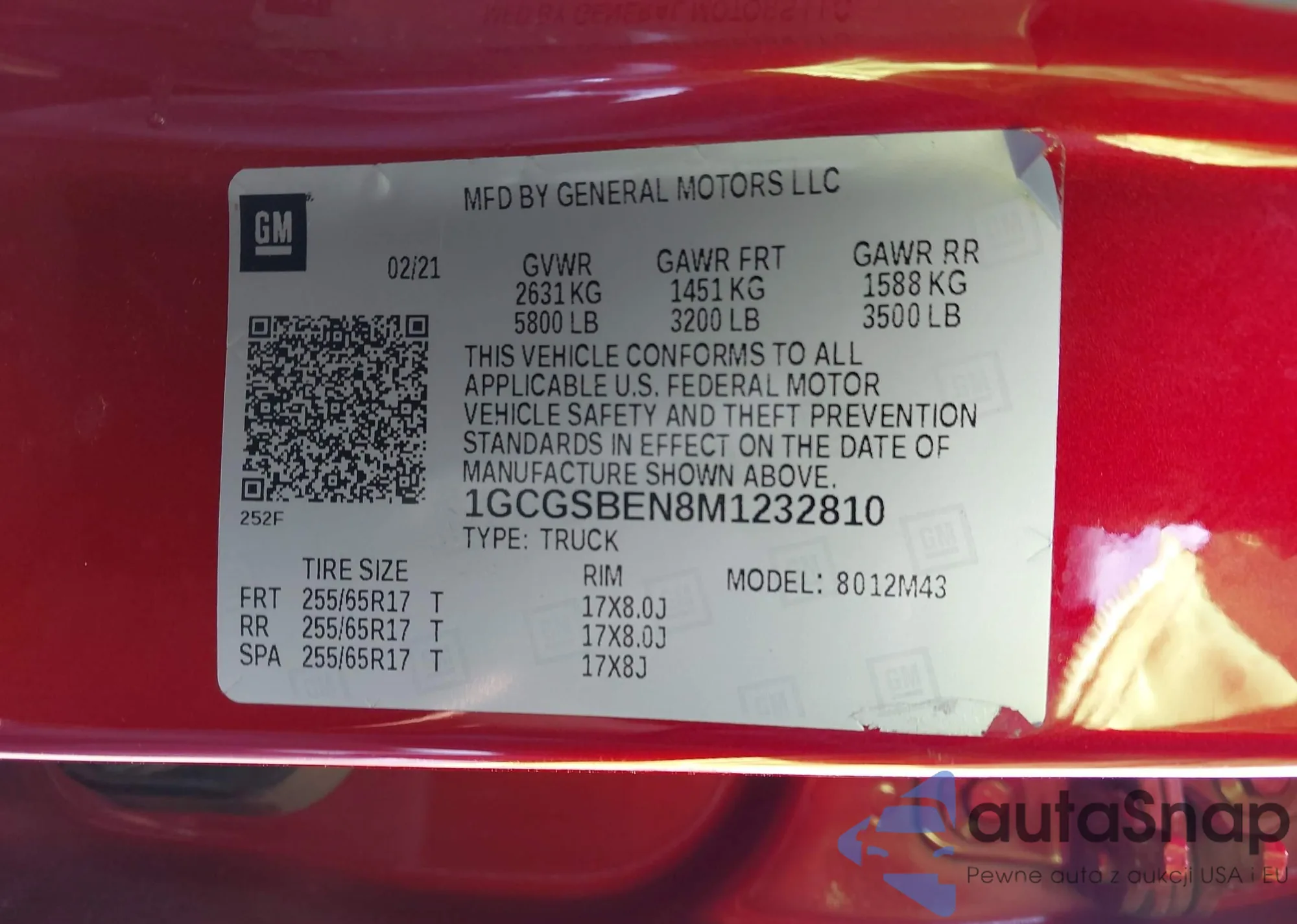 LOT: 42153482 VIN: 1GCGSBEN8M1232810
