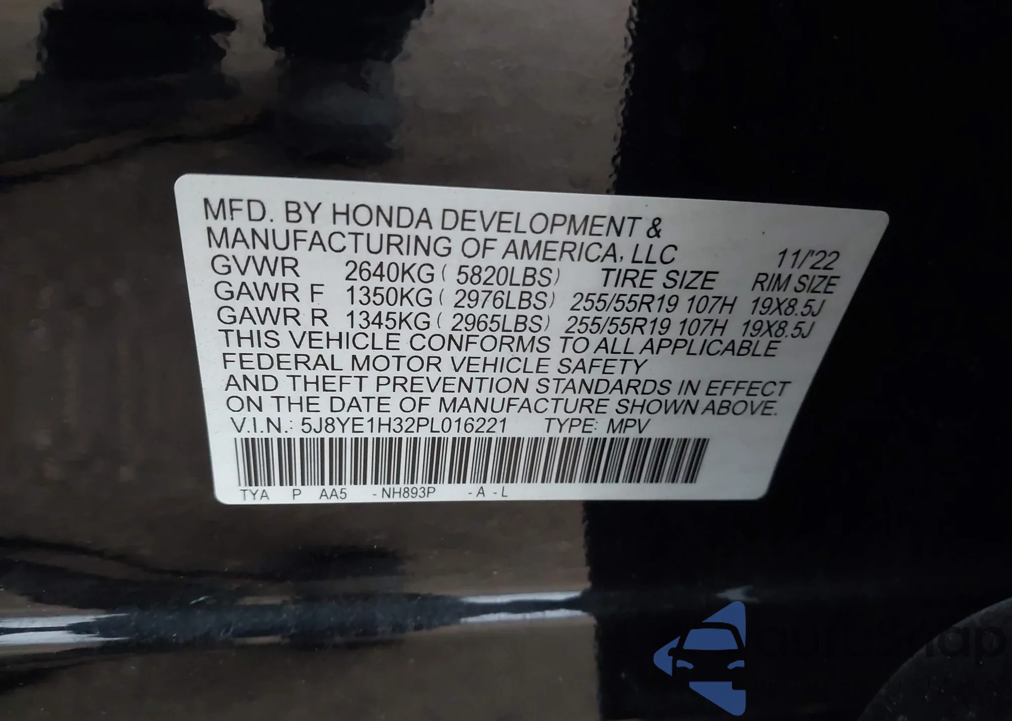 • VIN 5J8YE1H32PL016221