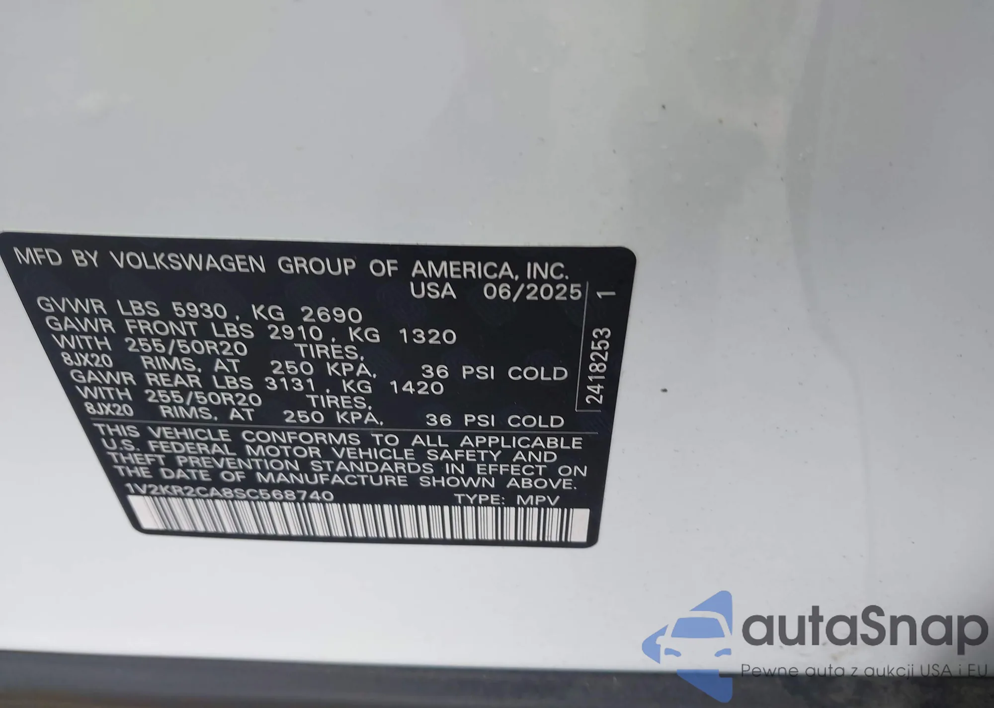 • VIN 1V2KR2CA8SC568740