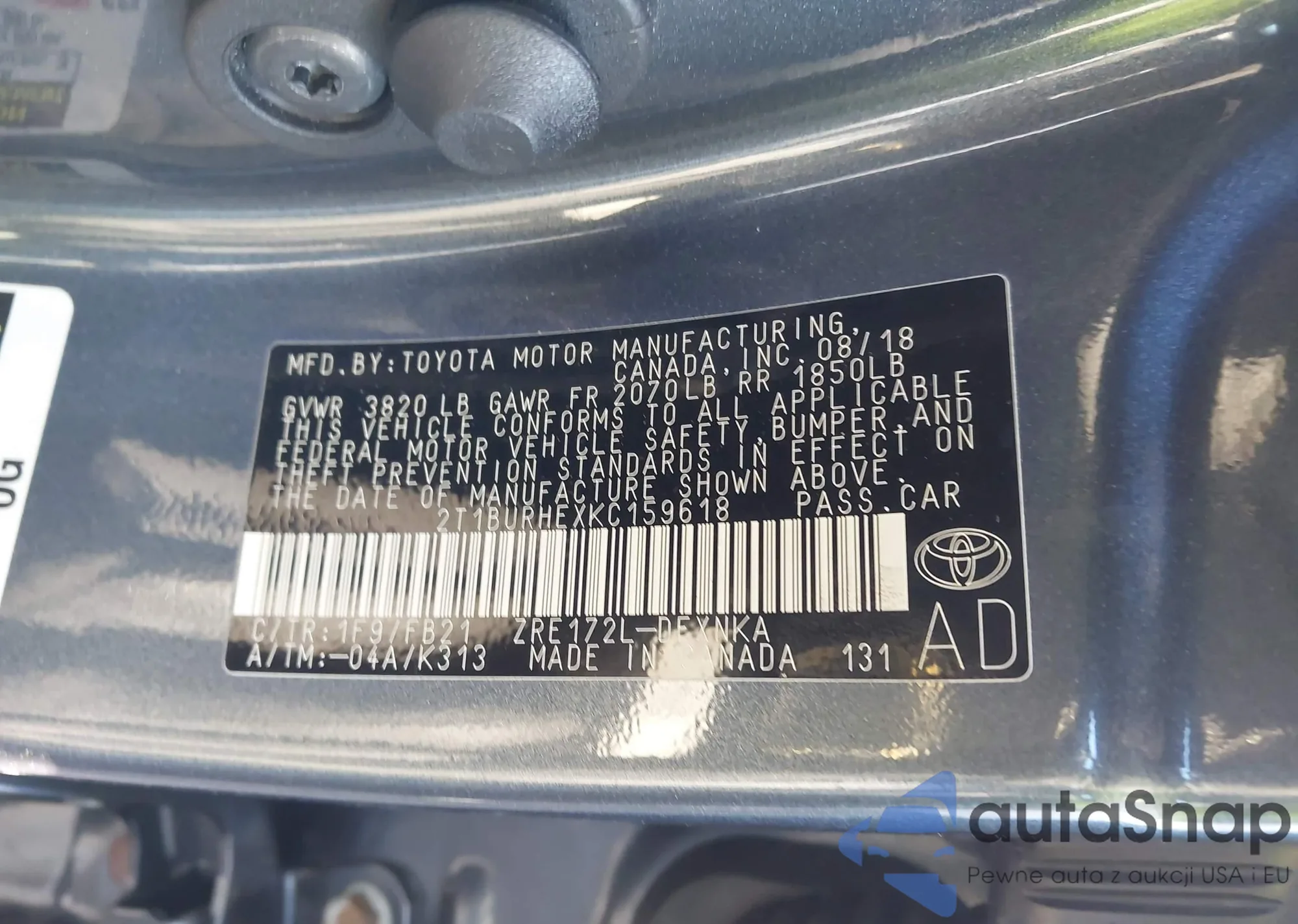 • VIN 4T1B31HK0KU513588