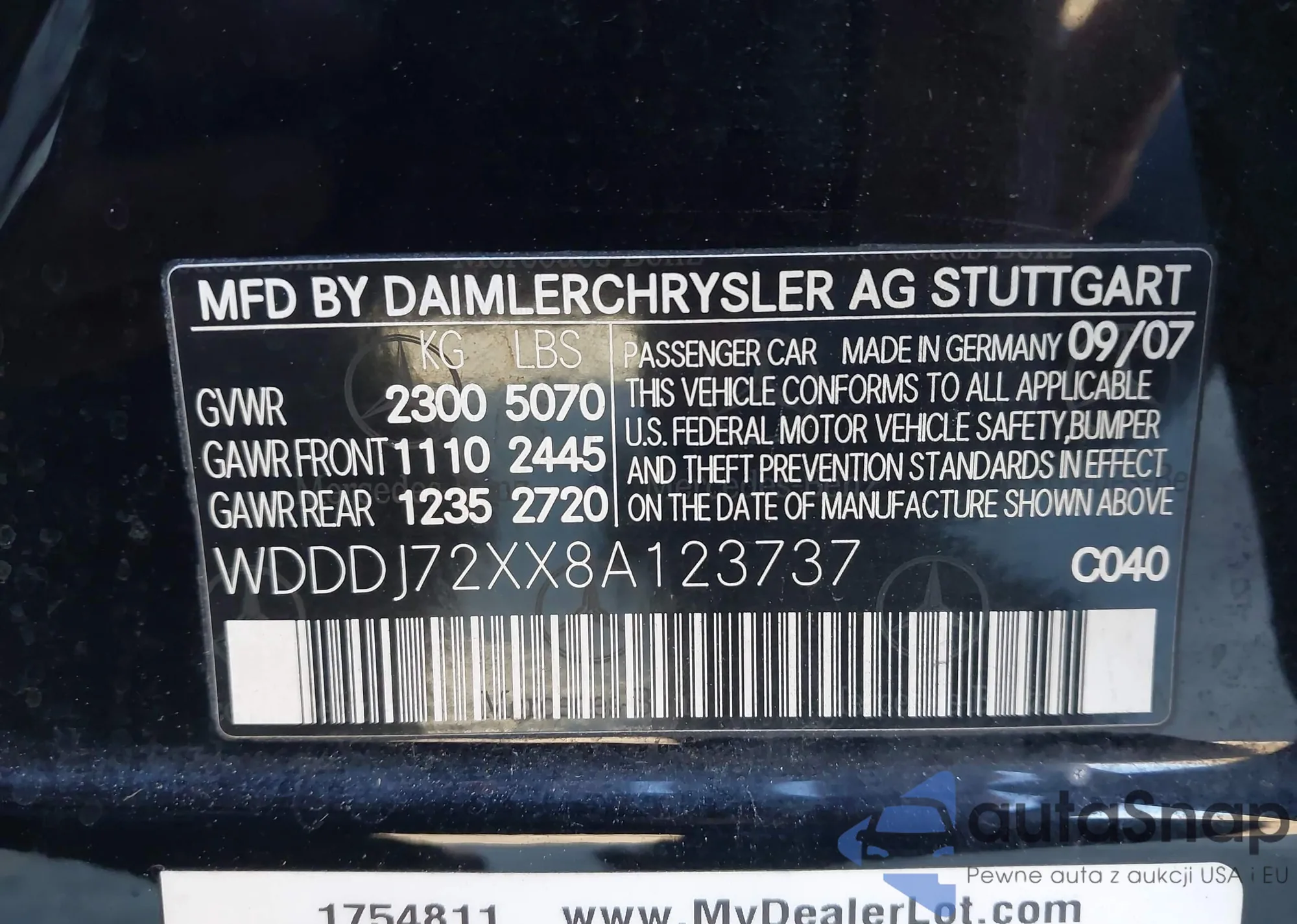 LOT: 44132286 VIN: WDDDJ72XX8A123737