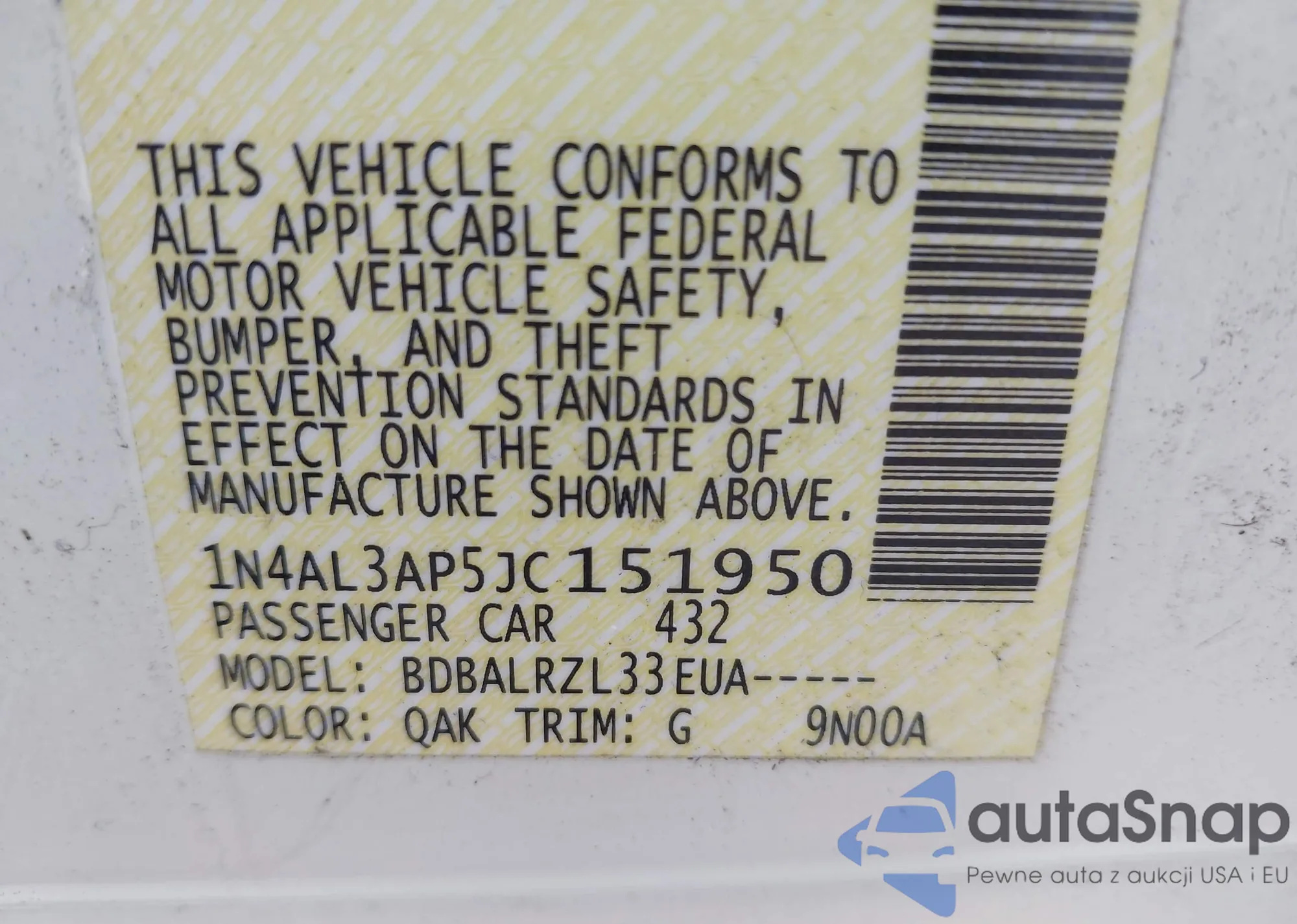 LOT: 44147878 VIN: 1N4AL3AP5JC151950