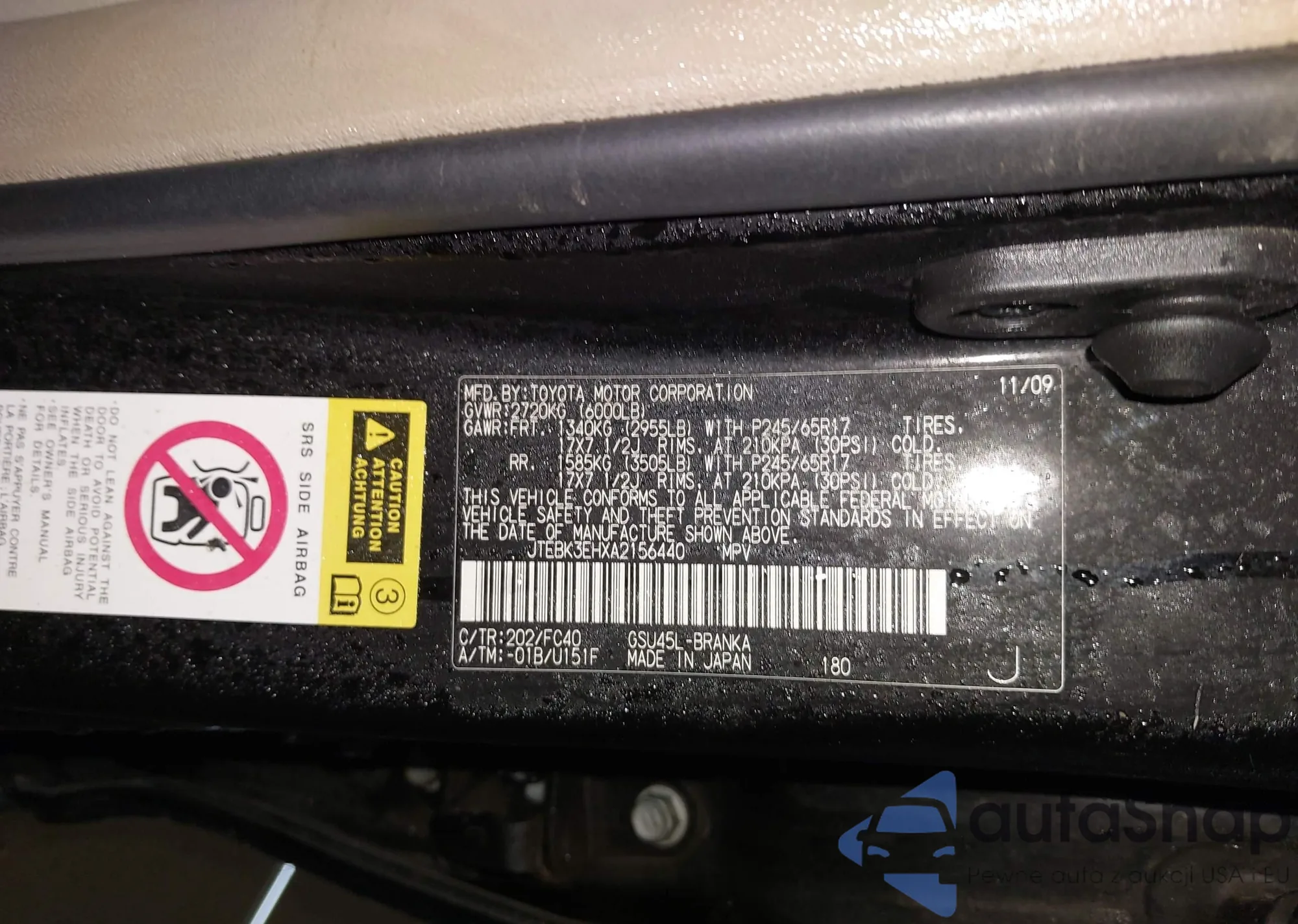 LOT: 44159779 VIN: JTEBK3EHXA2156440