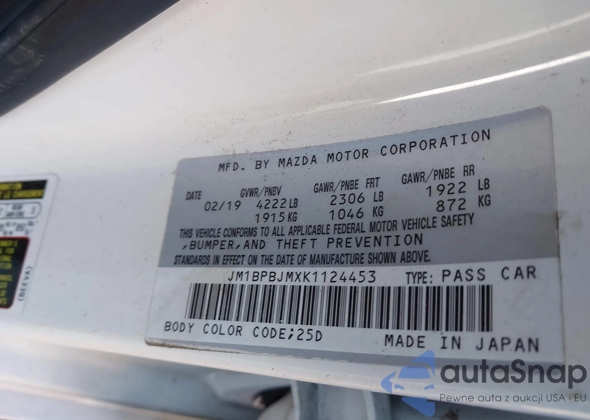 LOT: 44248238 VIN: JM1BL1L85C1589519