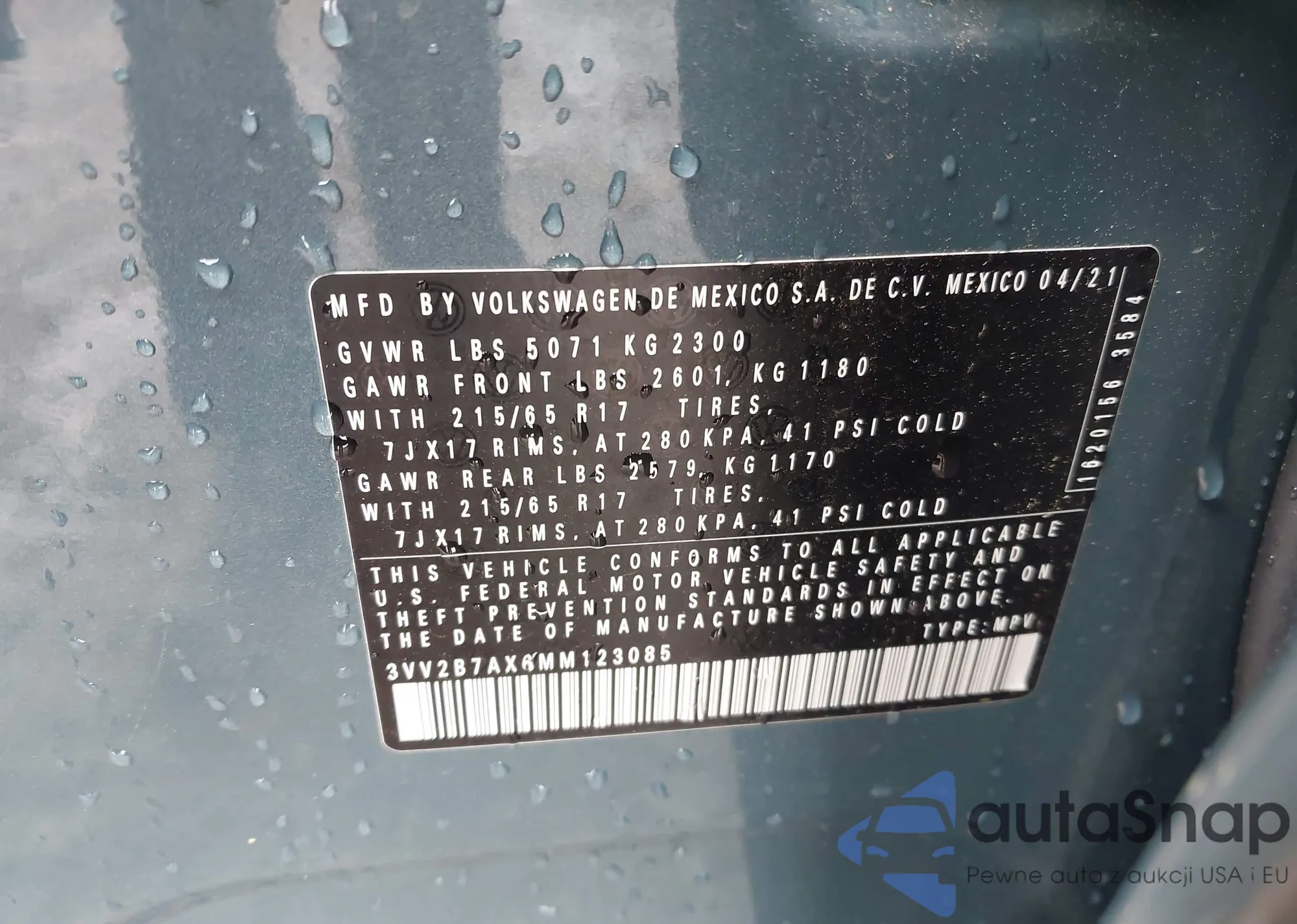 • VIN 3VV2B7AX6MM123085