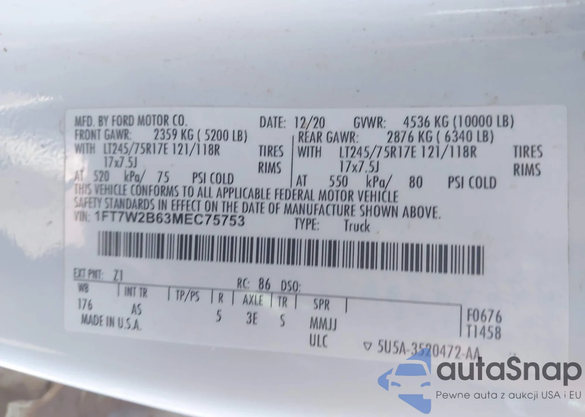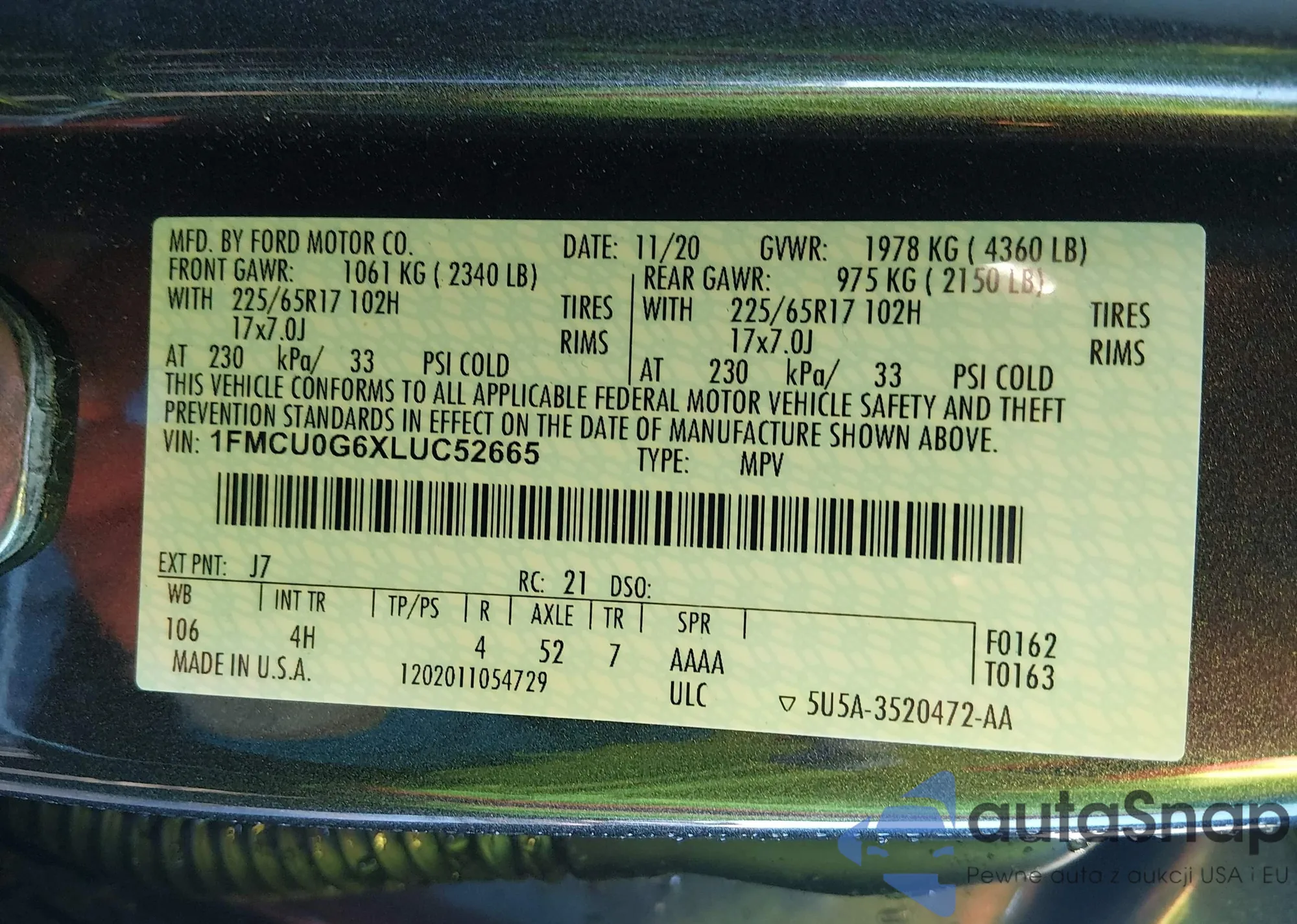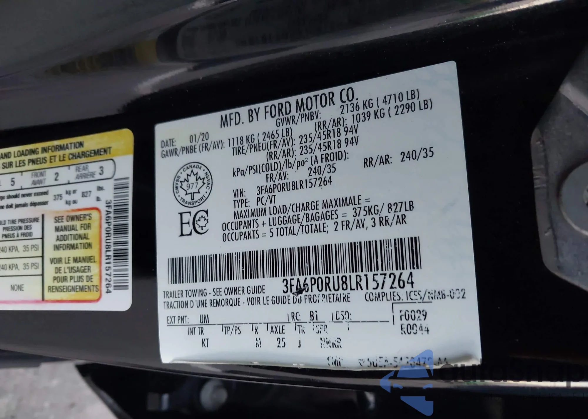 • VIN 3FA6P0RU8LR157264