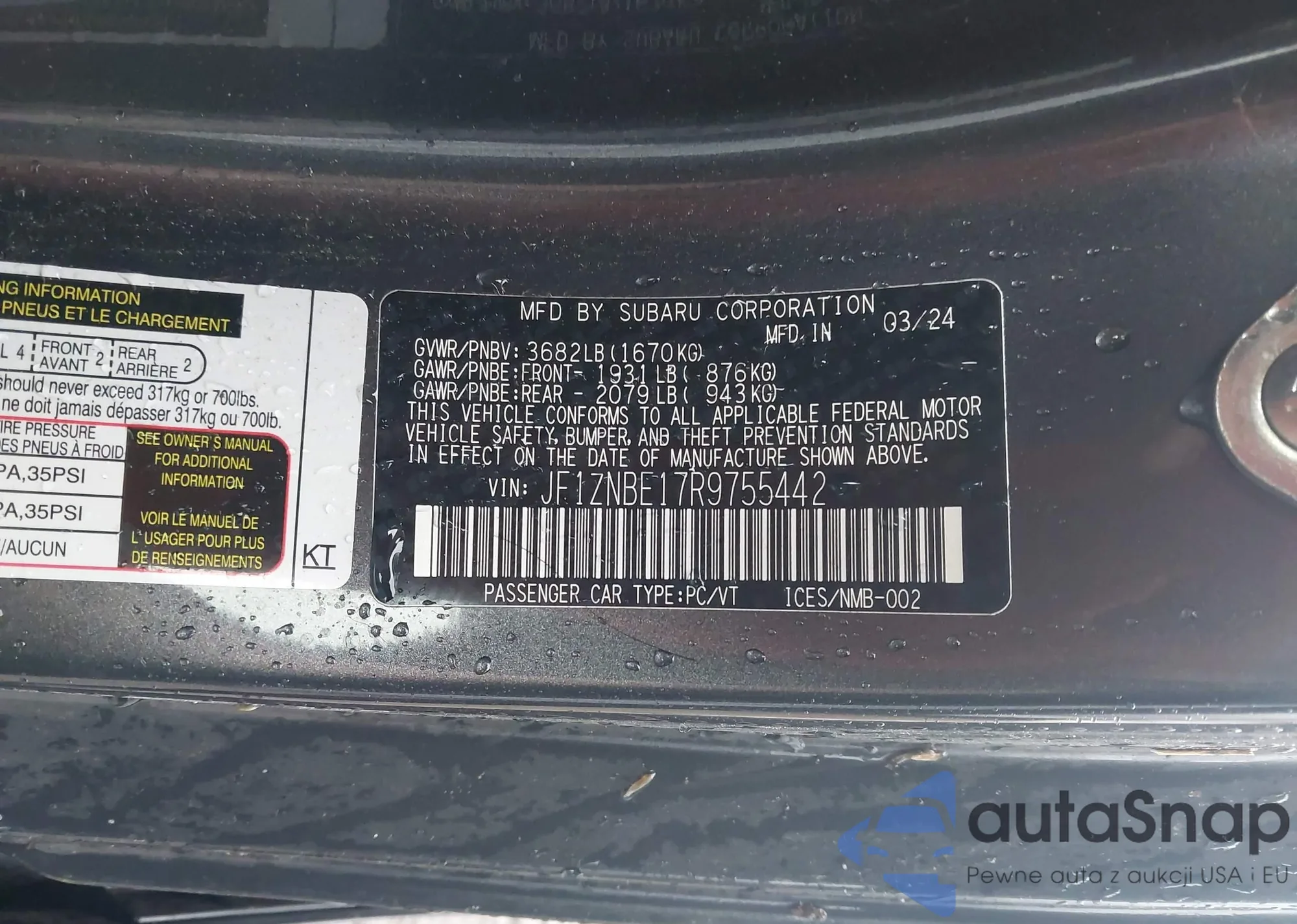 • VIN JF1ZNBE17R9755442
