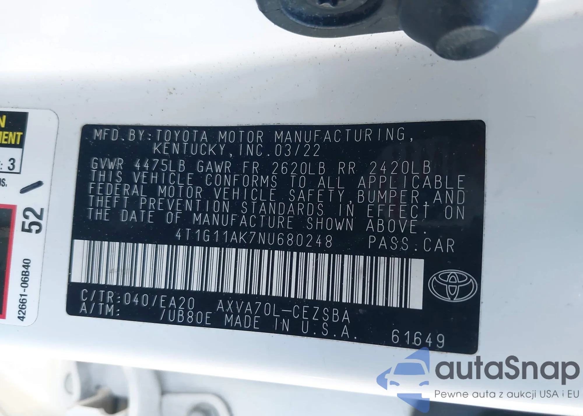 • VIN 4T1G11AK7NU680248
