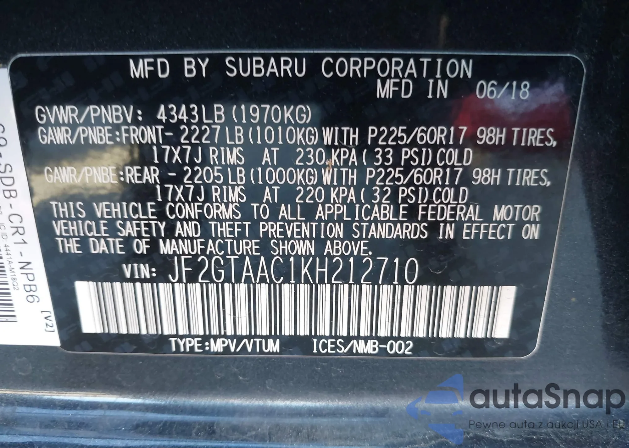 • VIN JF2GTAAC1KH212710