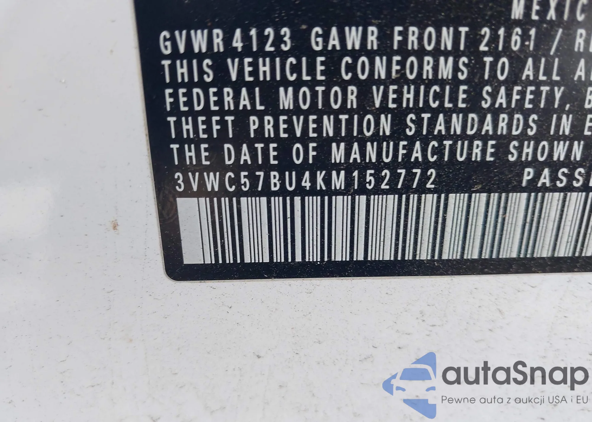 • VIN 3VWC57BU4KM152772