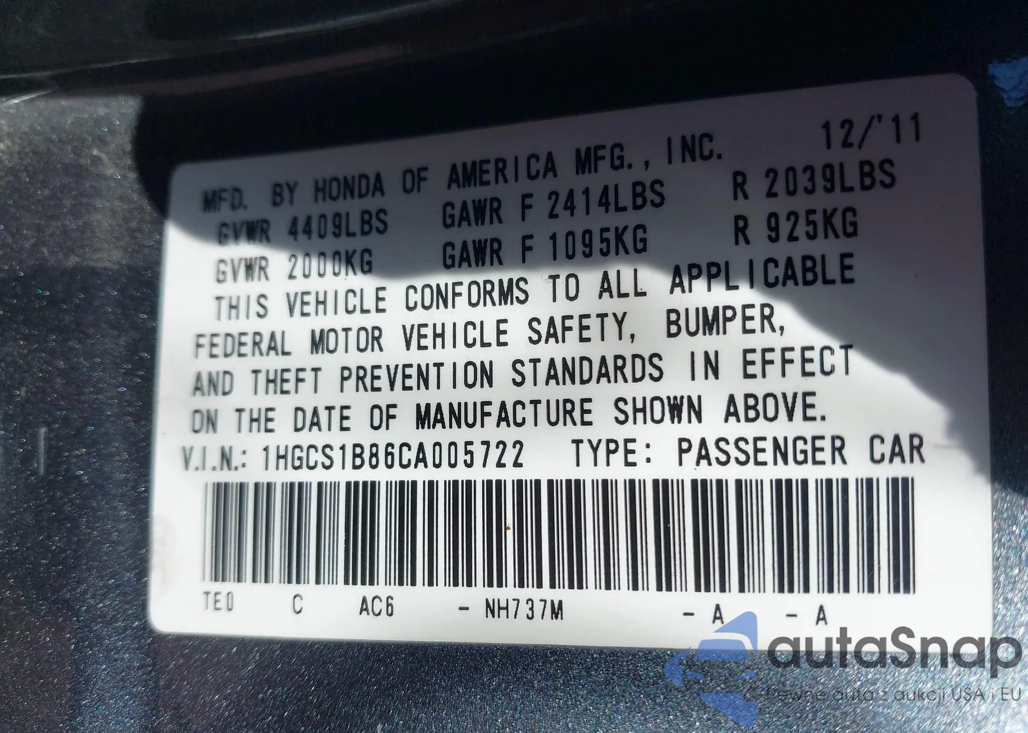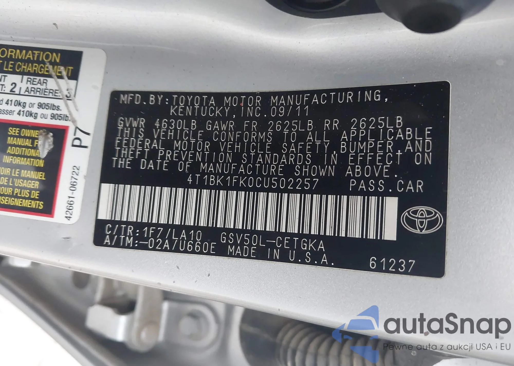 • VIN 4T1BK1FK0CU502257