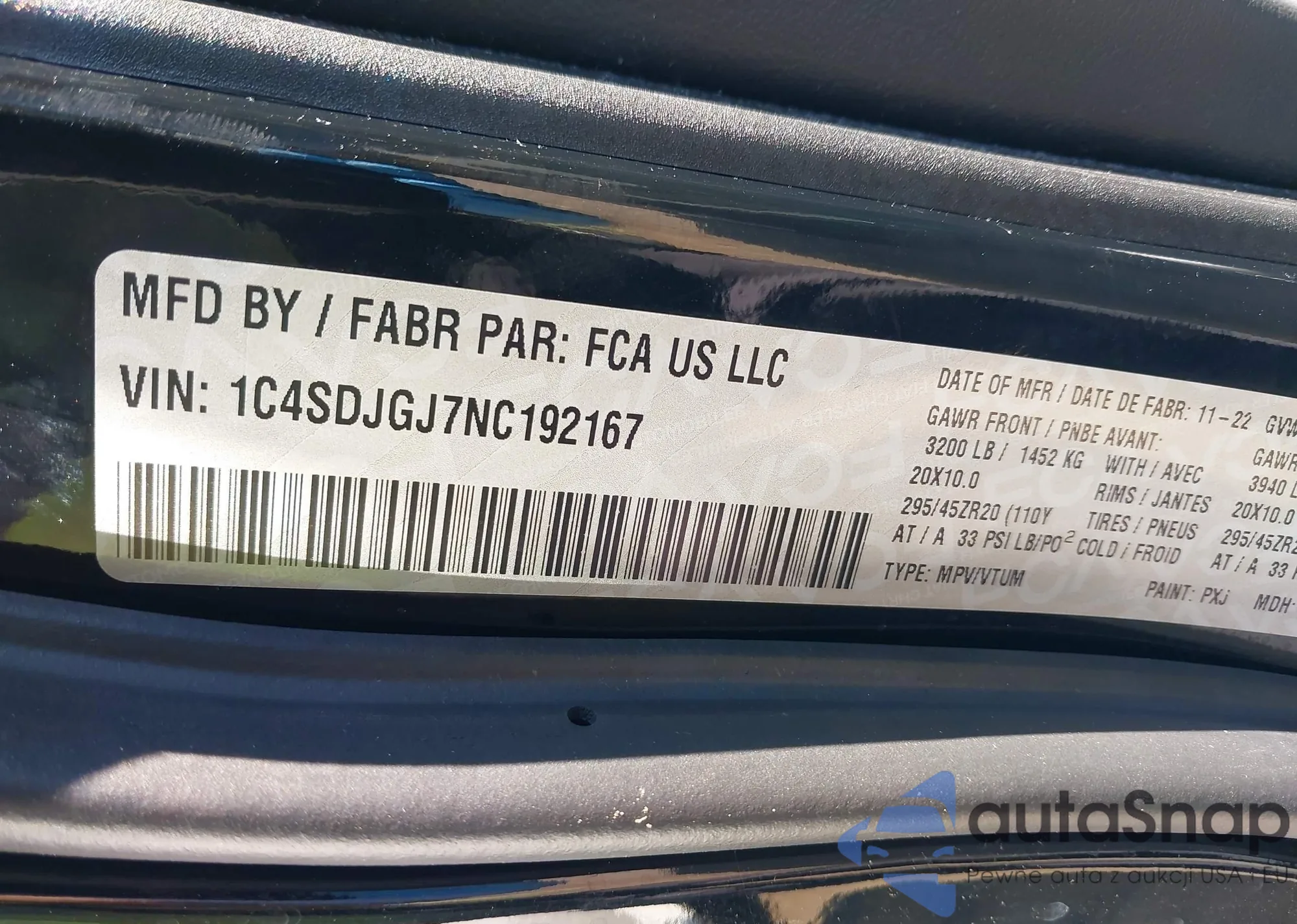 • VIN 1C4SDJGJ7NC192167