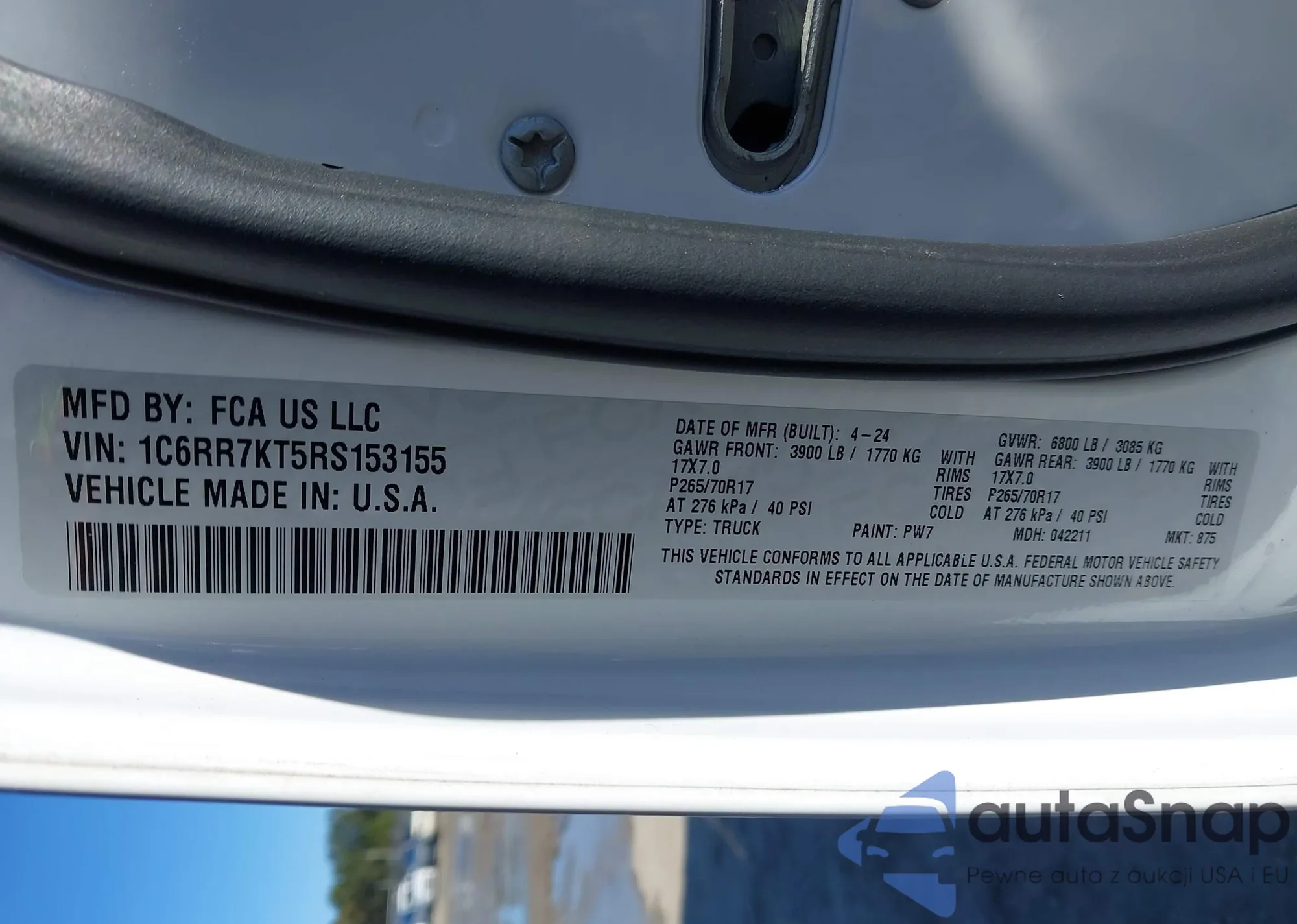 • VIN 1C6RR7KT5RS153155