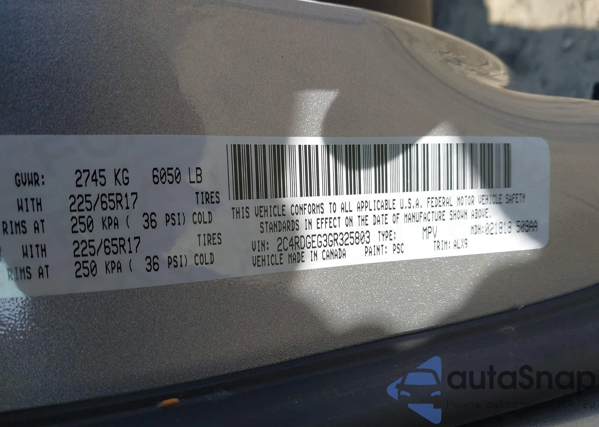 • VIN 2C4RDGEG3GR325803