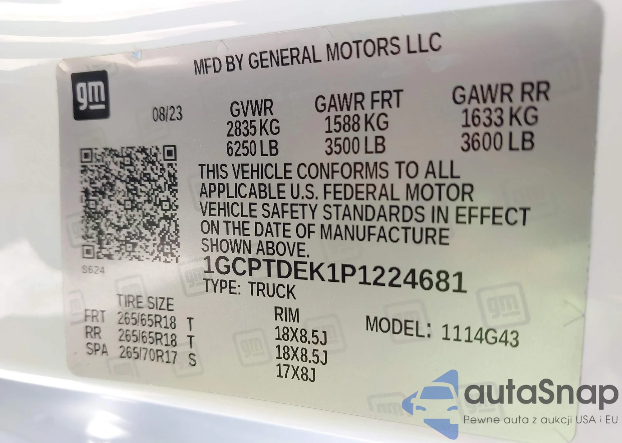 LOT: 43456308 VIN: 1GCPTDEK1P1224681