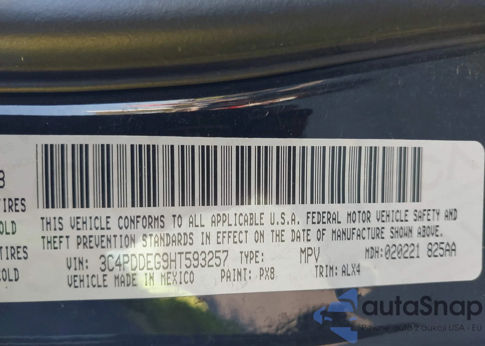 • VIN 3C4PDDEG9HT593257
