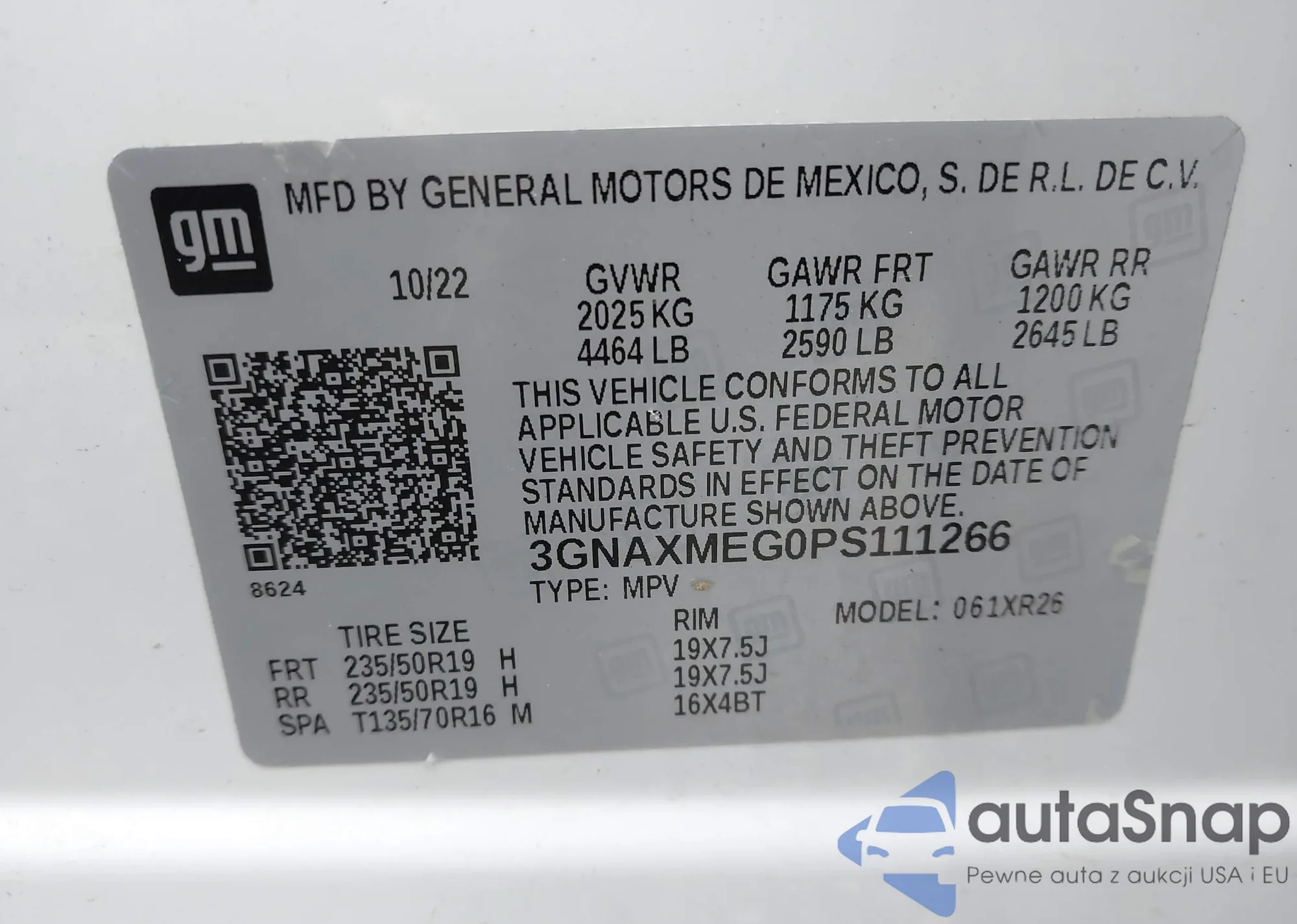 • VIN 3GNAXMEG0PS111266